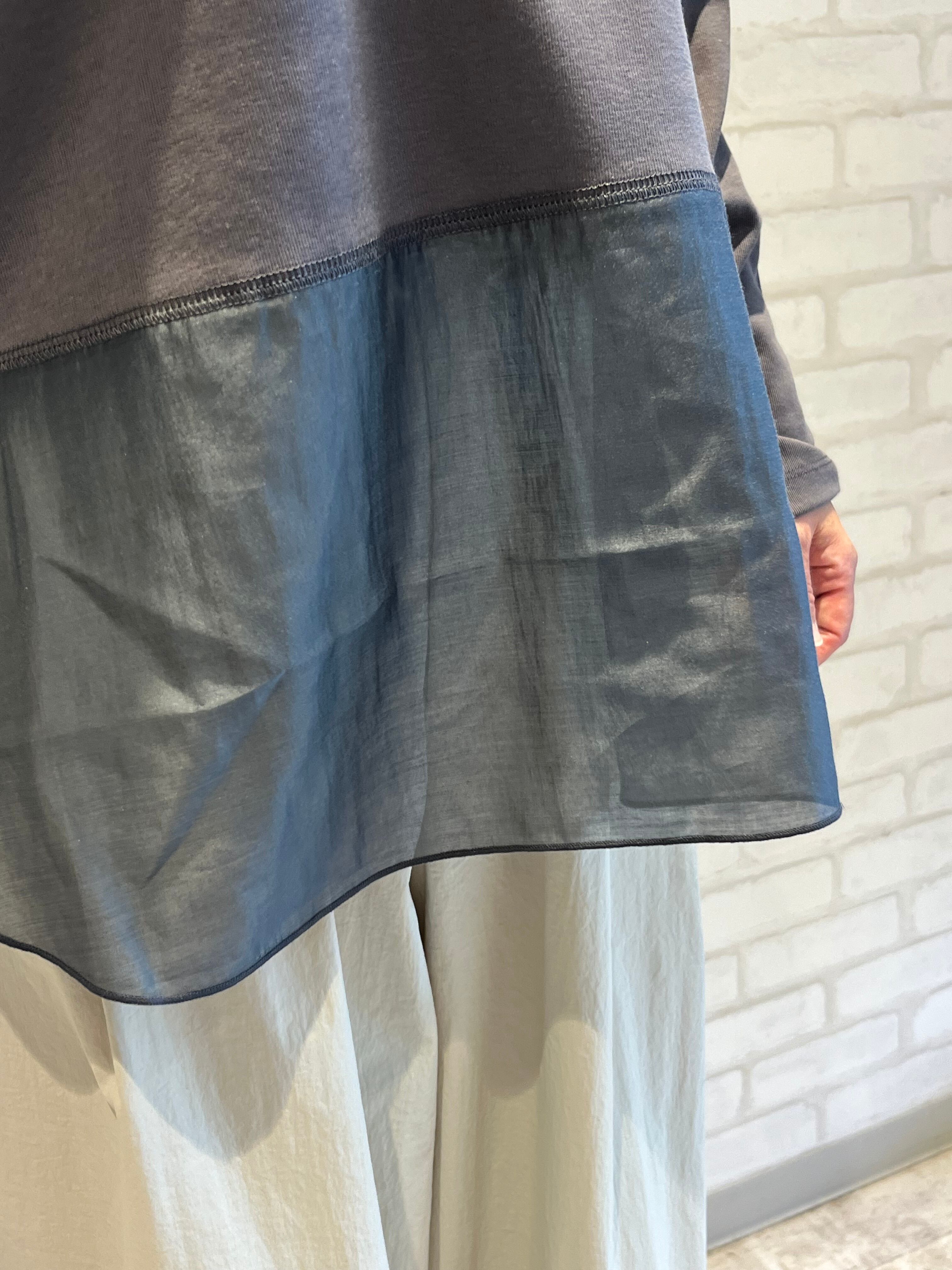2025AW新作/Dignite collier/80256002/裾シアー切り替え長袖Tシャツ(チャコール)