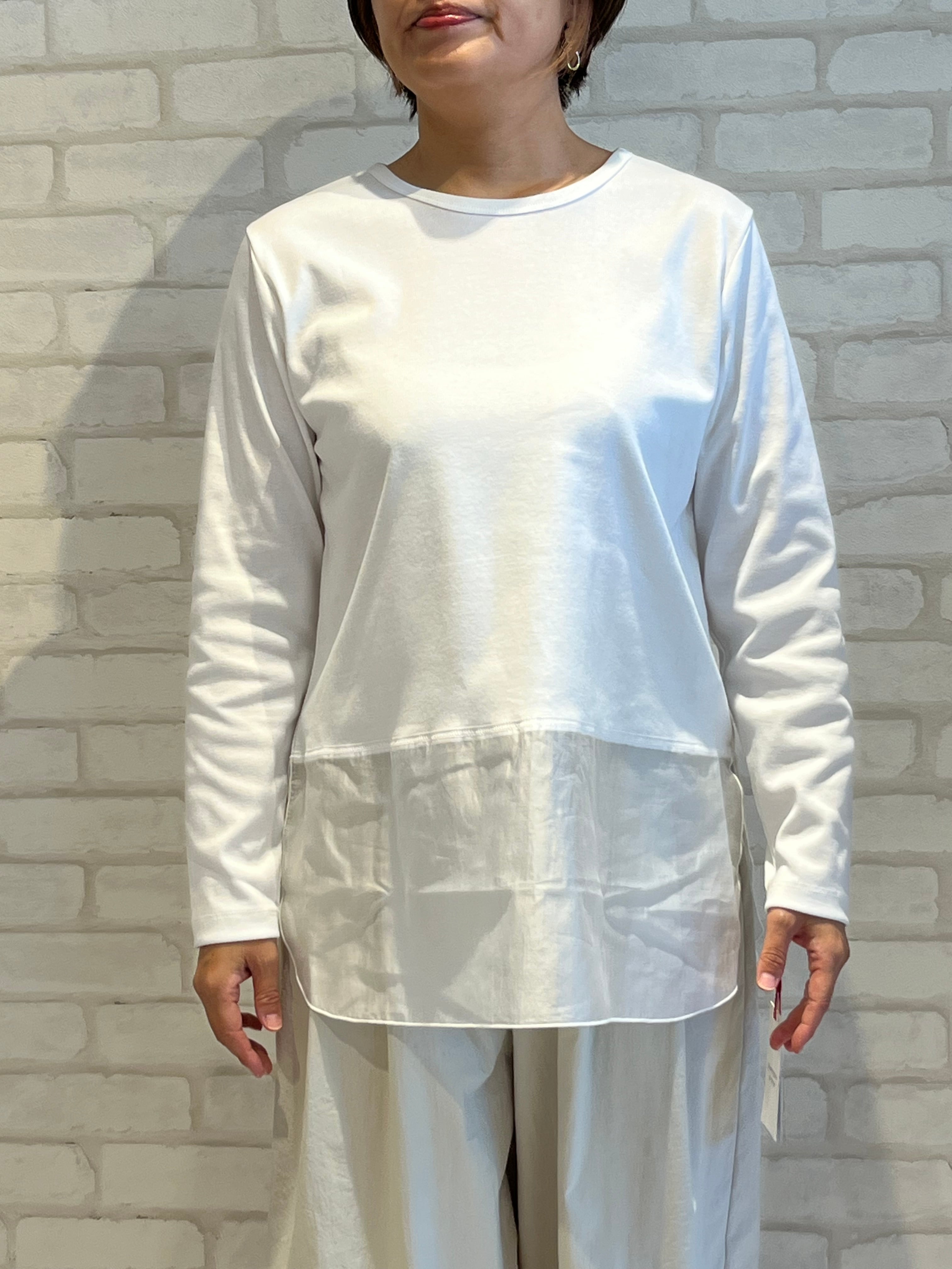 2025AW新作/Dignite collier/80256002/裾シアー切り替え長袖Tシャツ(オフホワイト)