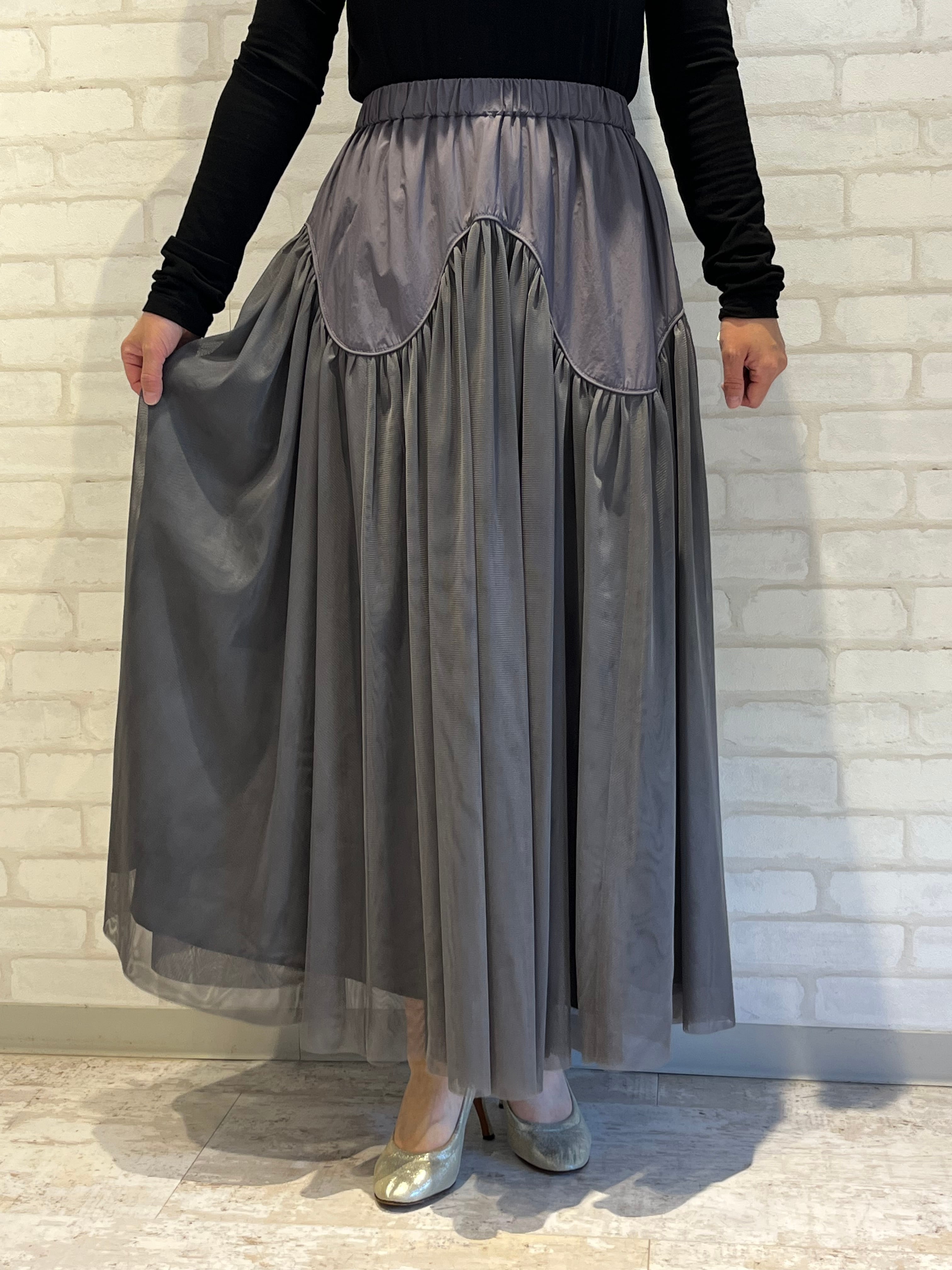 2025AW新作/Dignite collier/80256036/切り替えチュールスカート(チャコールグレー)