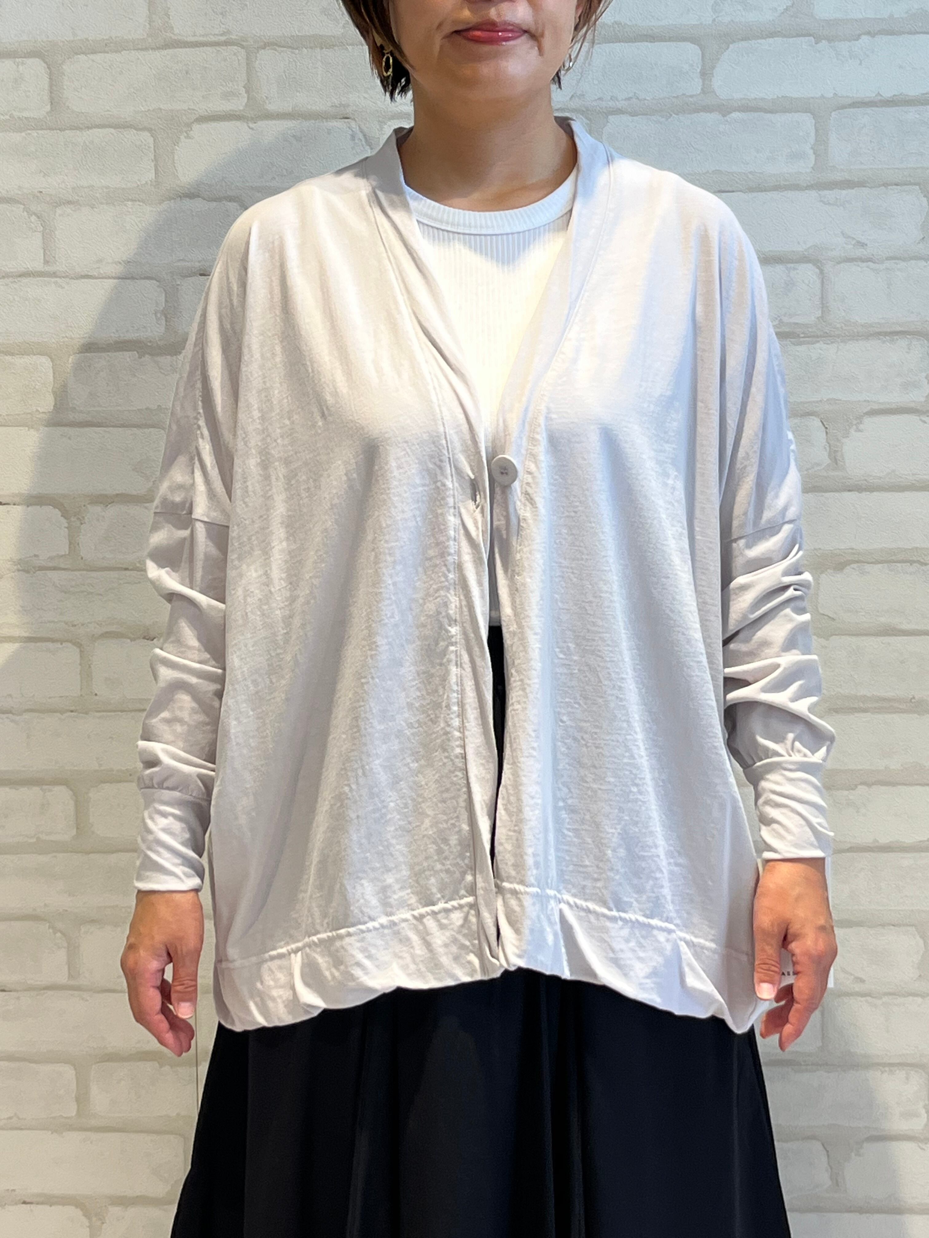 さらっとした質感と伸縮性ある生地感で着心地抜群な、薄手のコットンカーディガン。