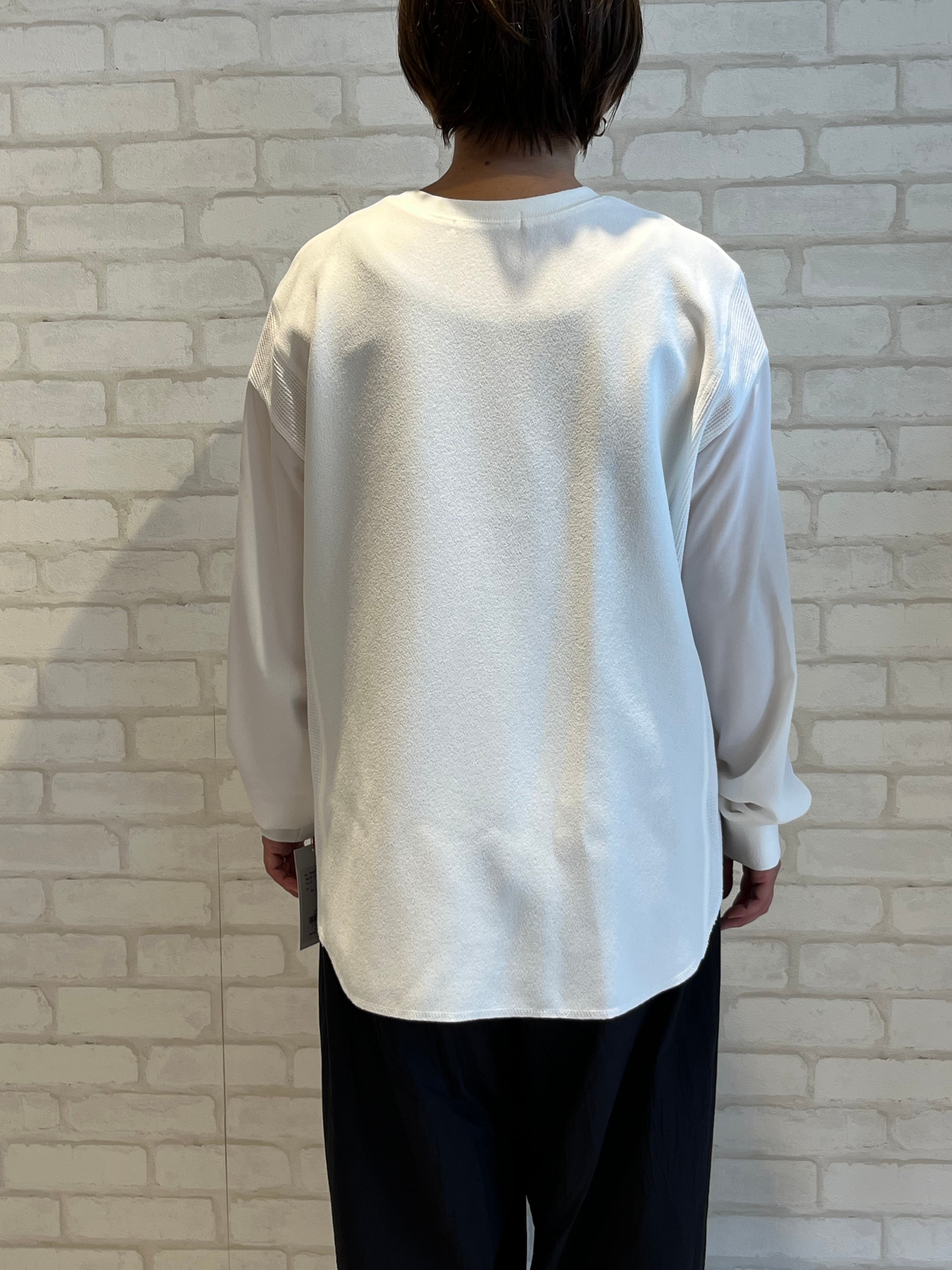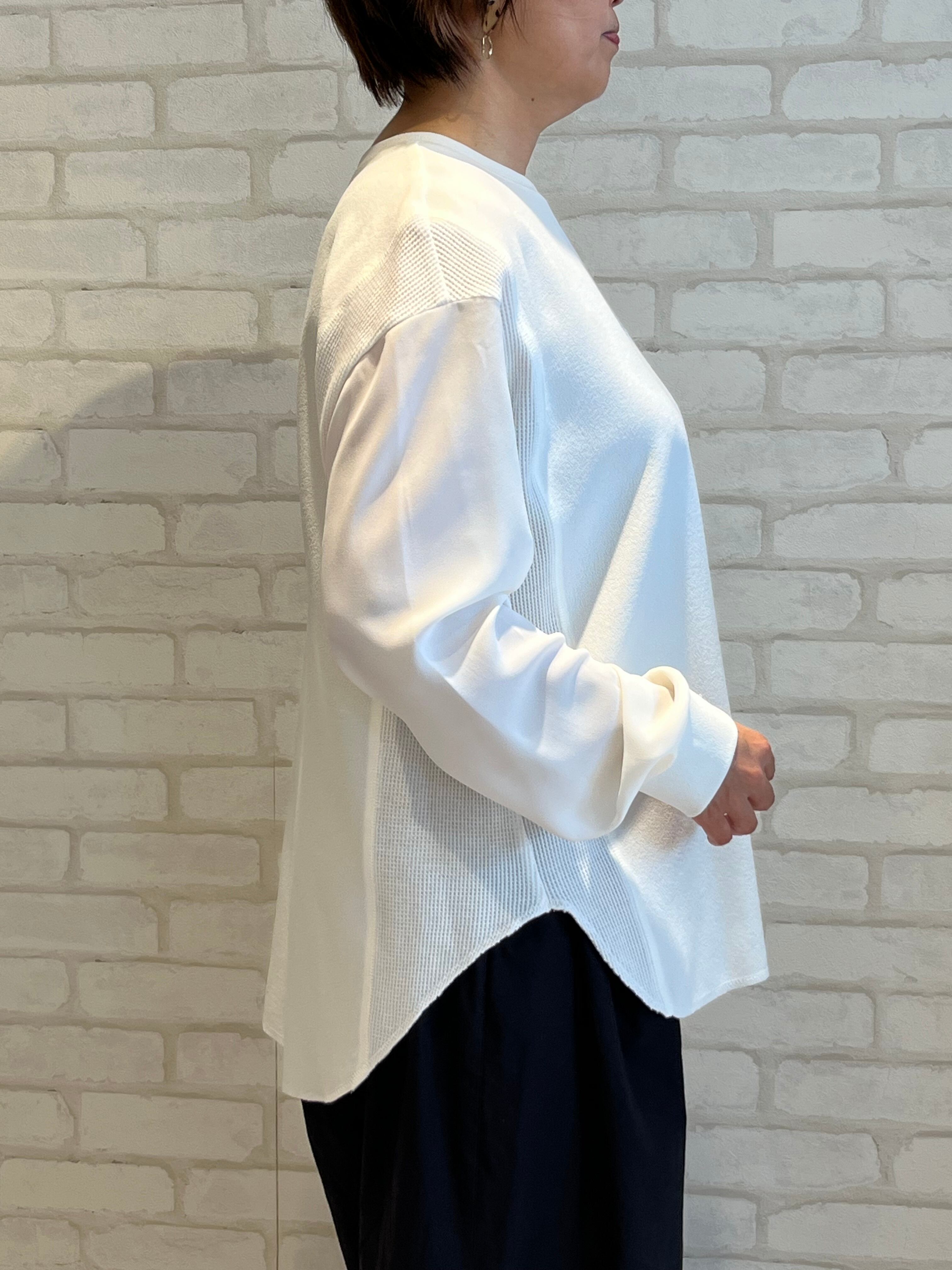 2025AW新作/PASSIONE/546930/ワッフル切り替えジョーゼットプルオーバー(ホワイト)