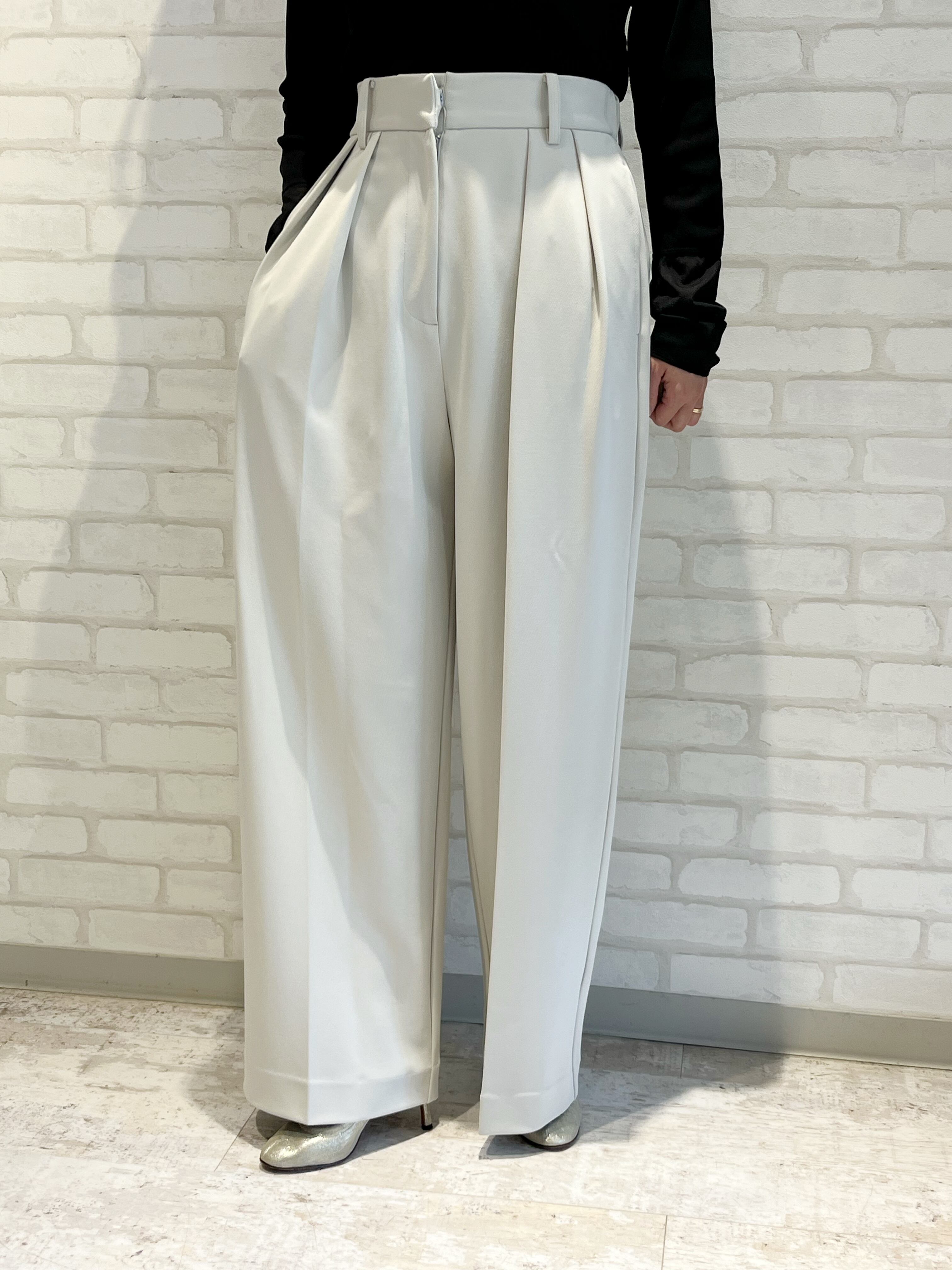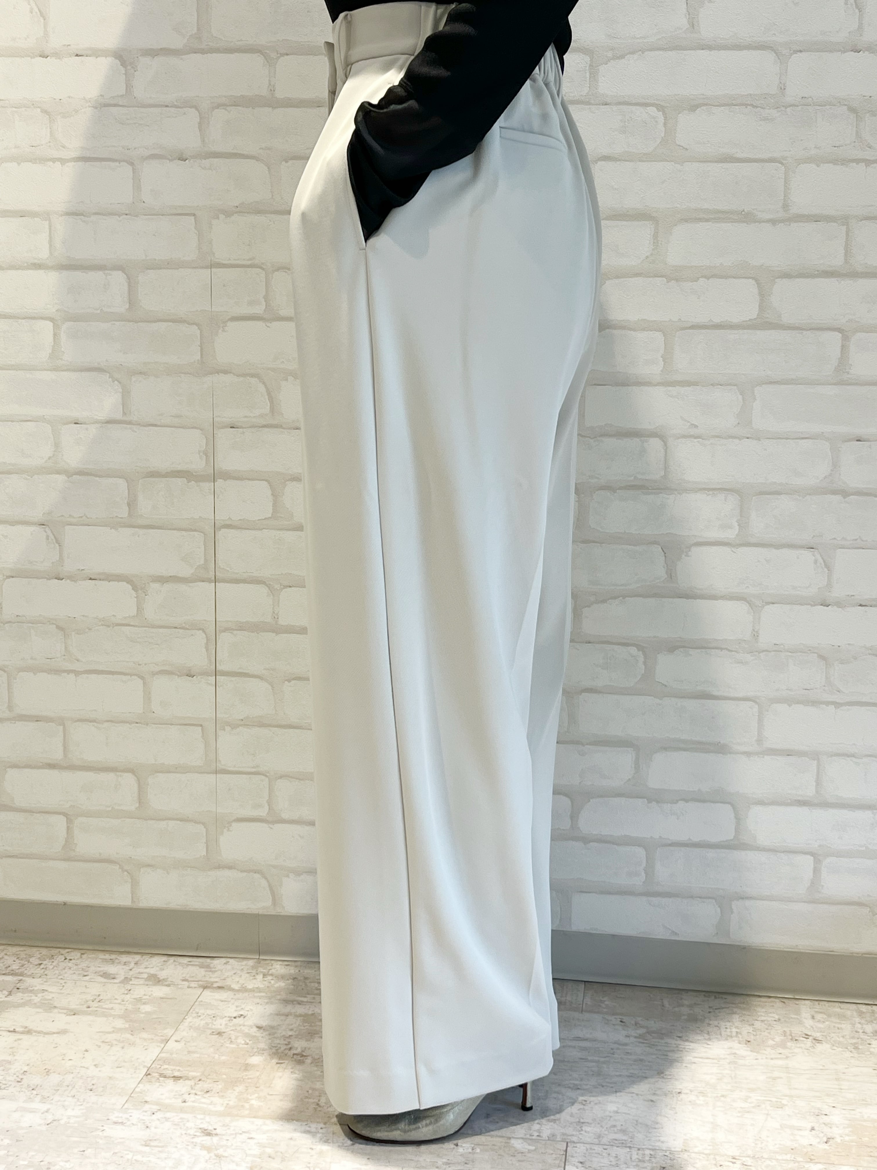 フロントタックのワイドパンツで、ストンと落ち感がある美シルエット!