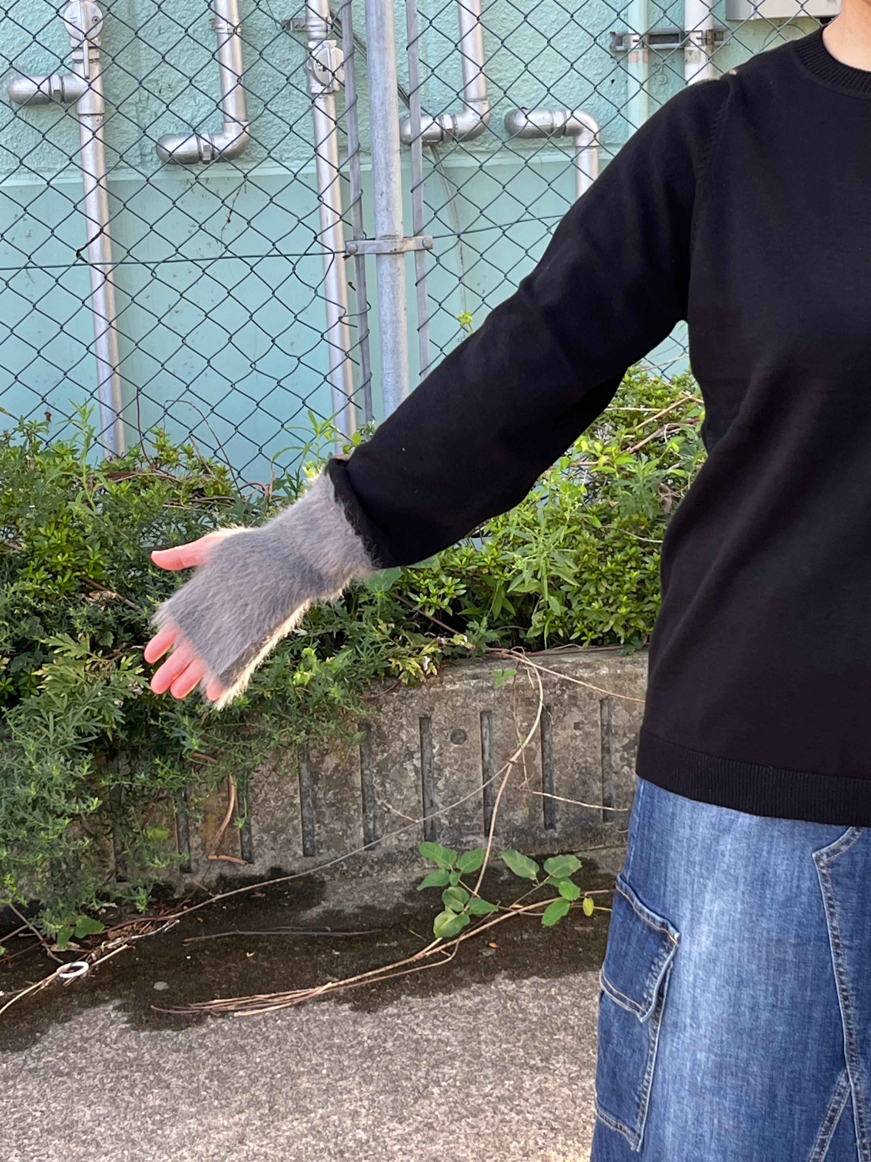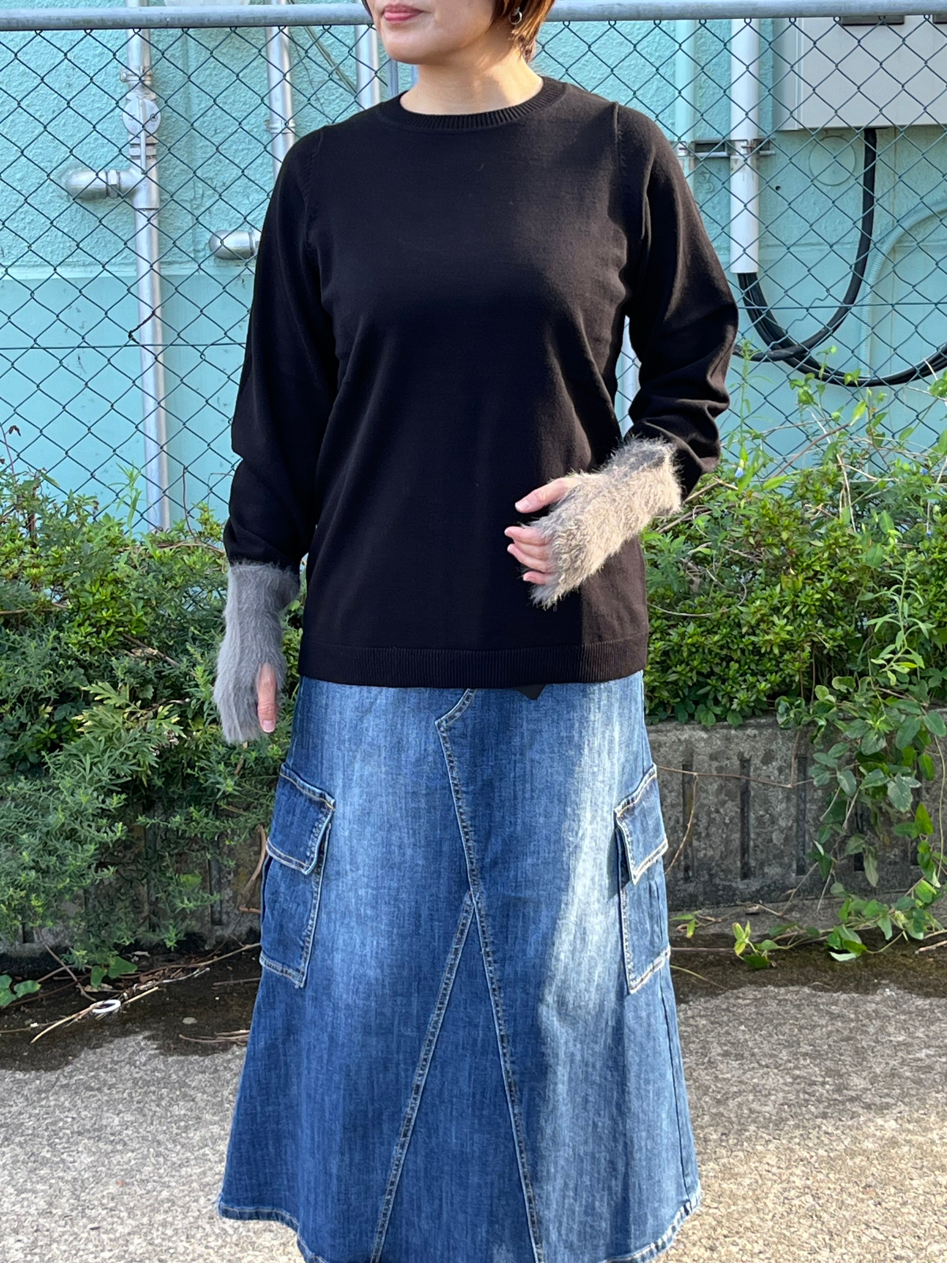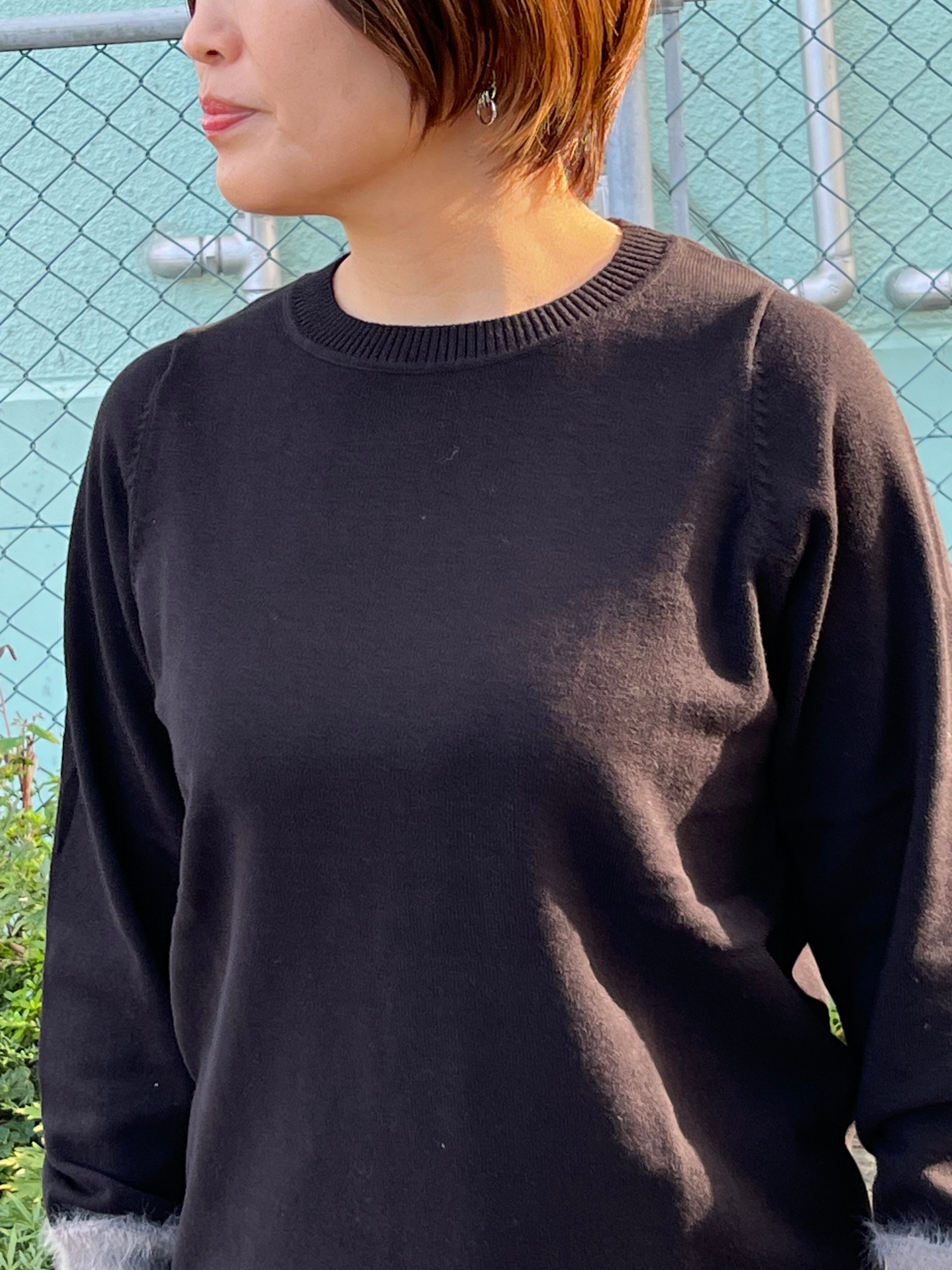 一枚でもインナーとしても着れる袖口部分がシャギー切り替えになった