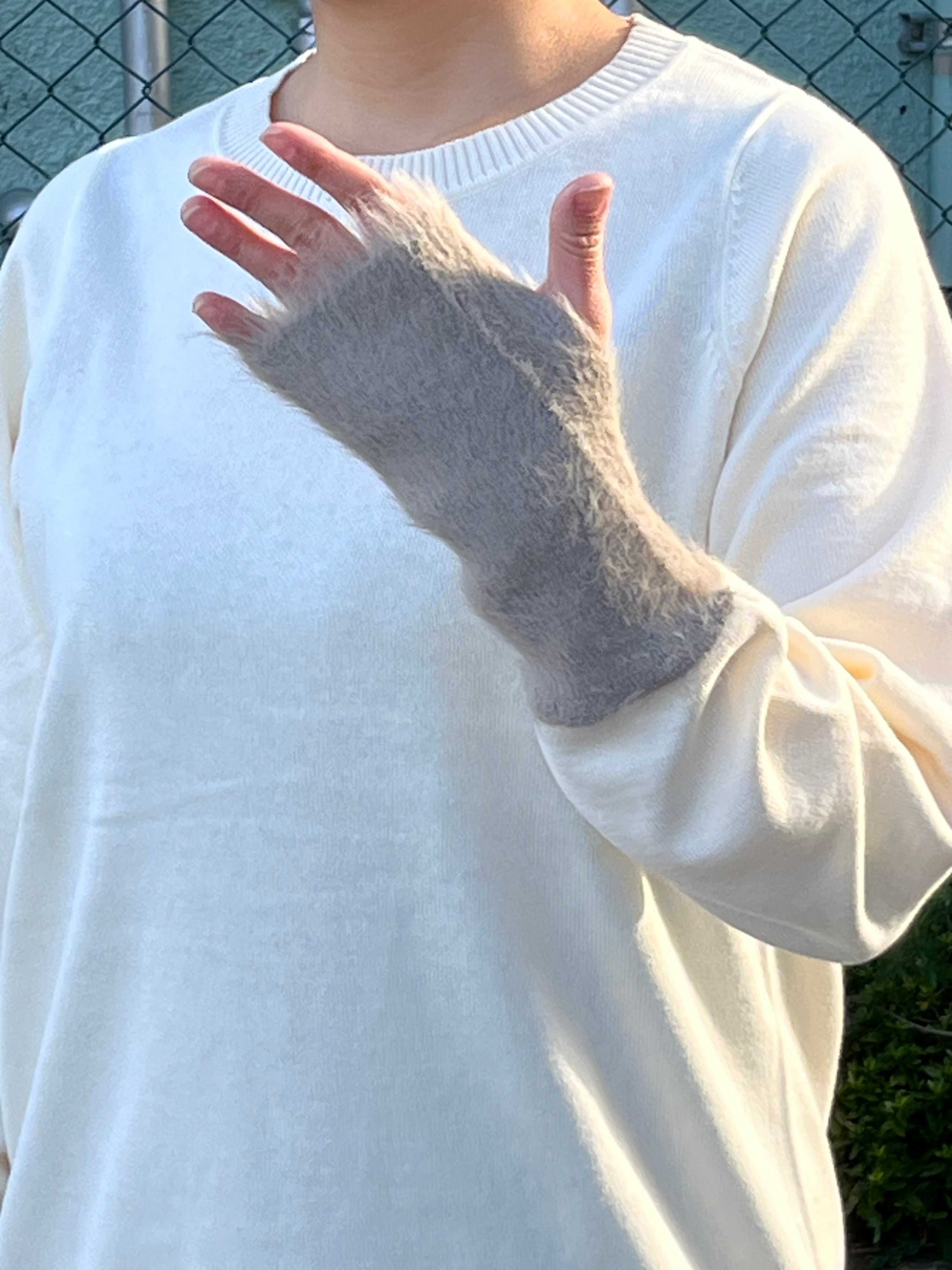 【再入荷】siro de labonte/R543102/シャギー切り替えフィンガーニット(オフ×グレージュ)