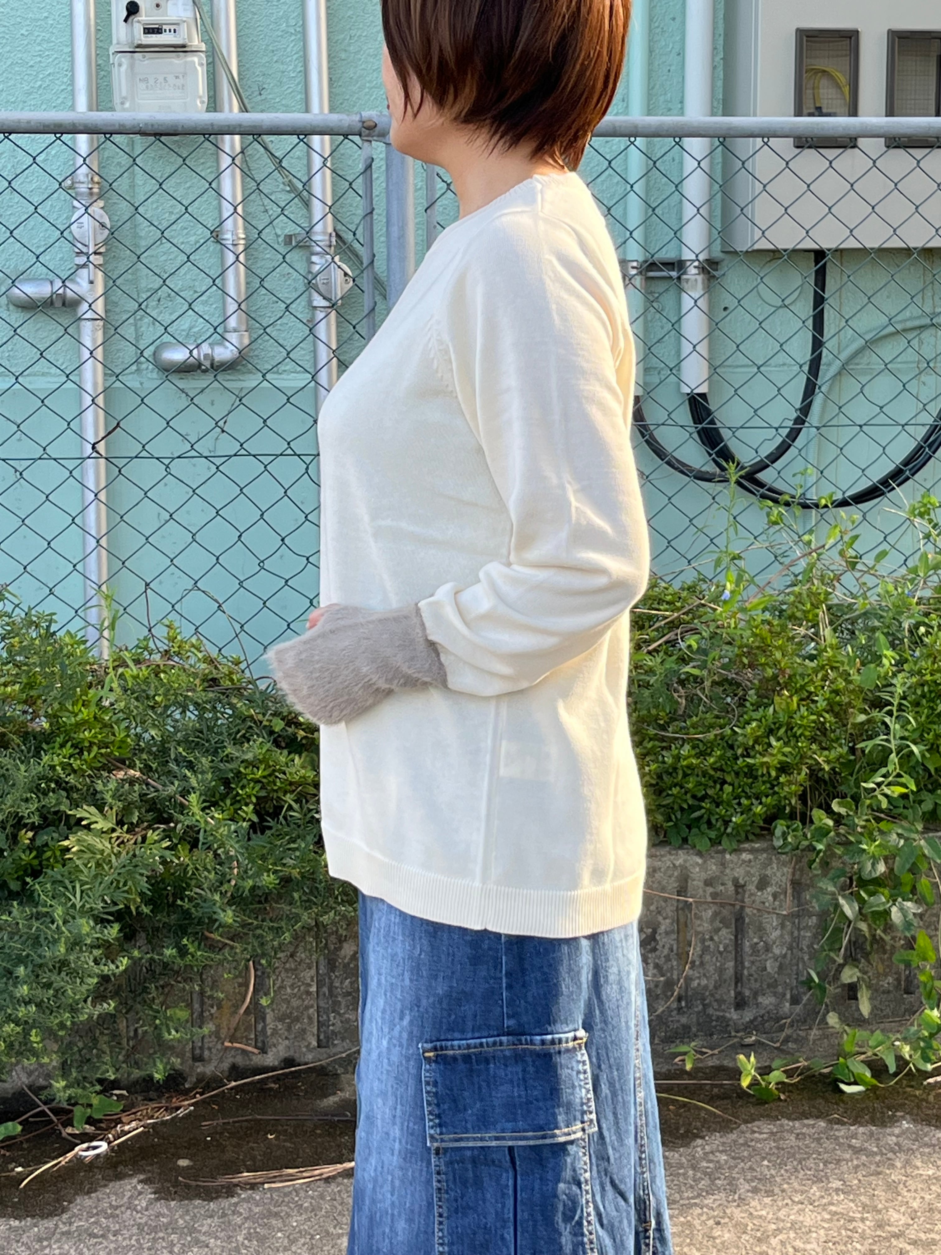 一枚でもインナーとしても着れる袖口部分がシャギー切り替えになった