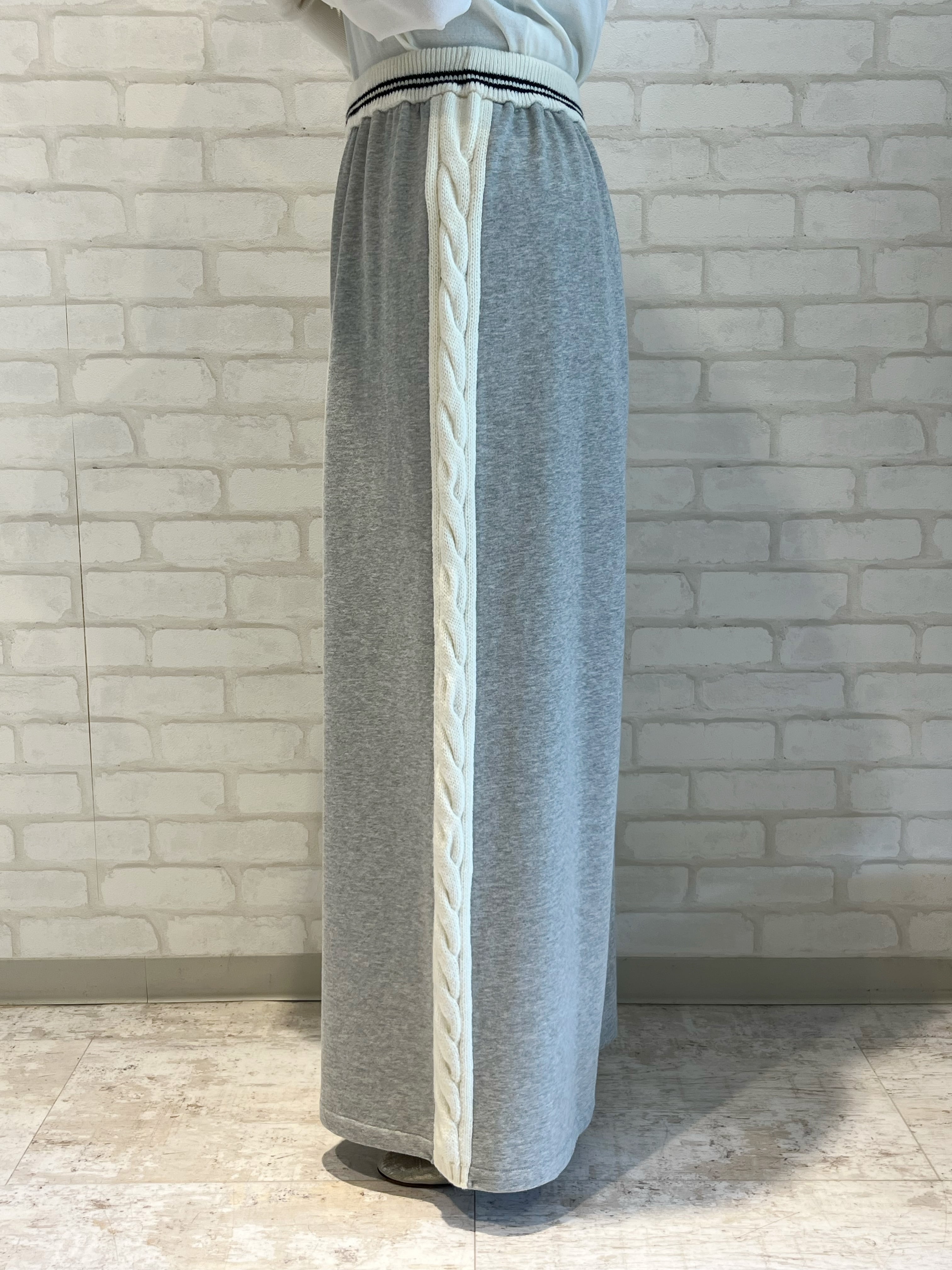 サイドラインとウエスト部分がニットの切り替えデザインになっている、スウェットワイドパンツ。