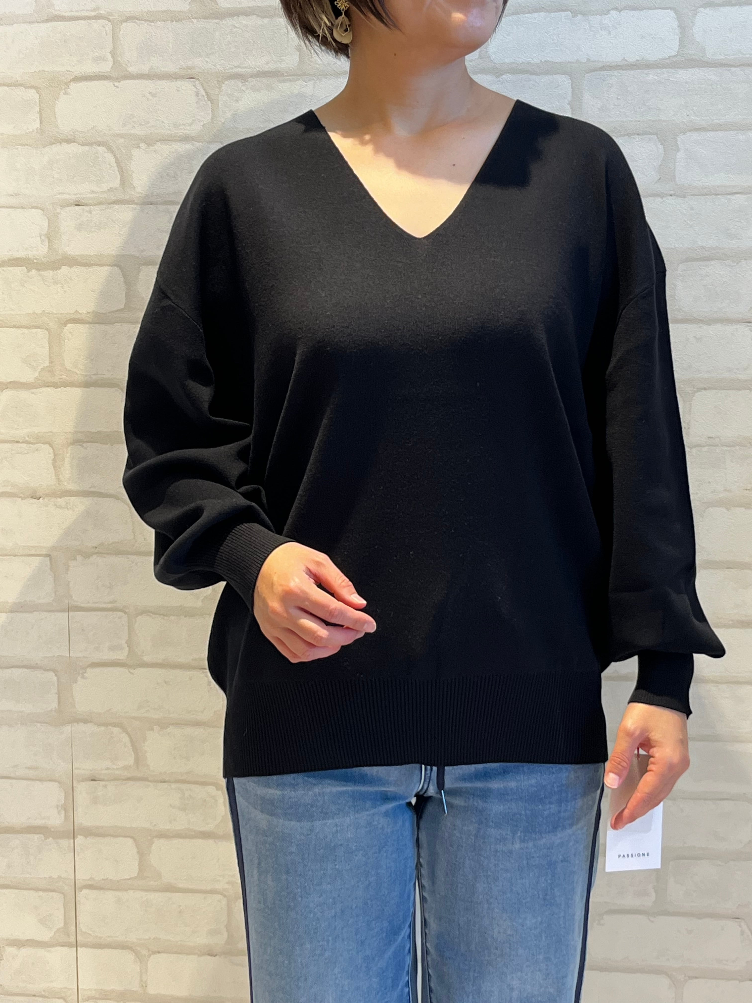 やや深めに開いたVネックが女性らしいデザインとなっております。