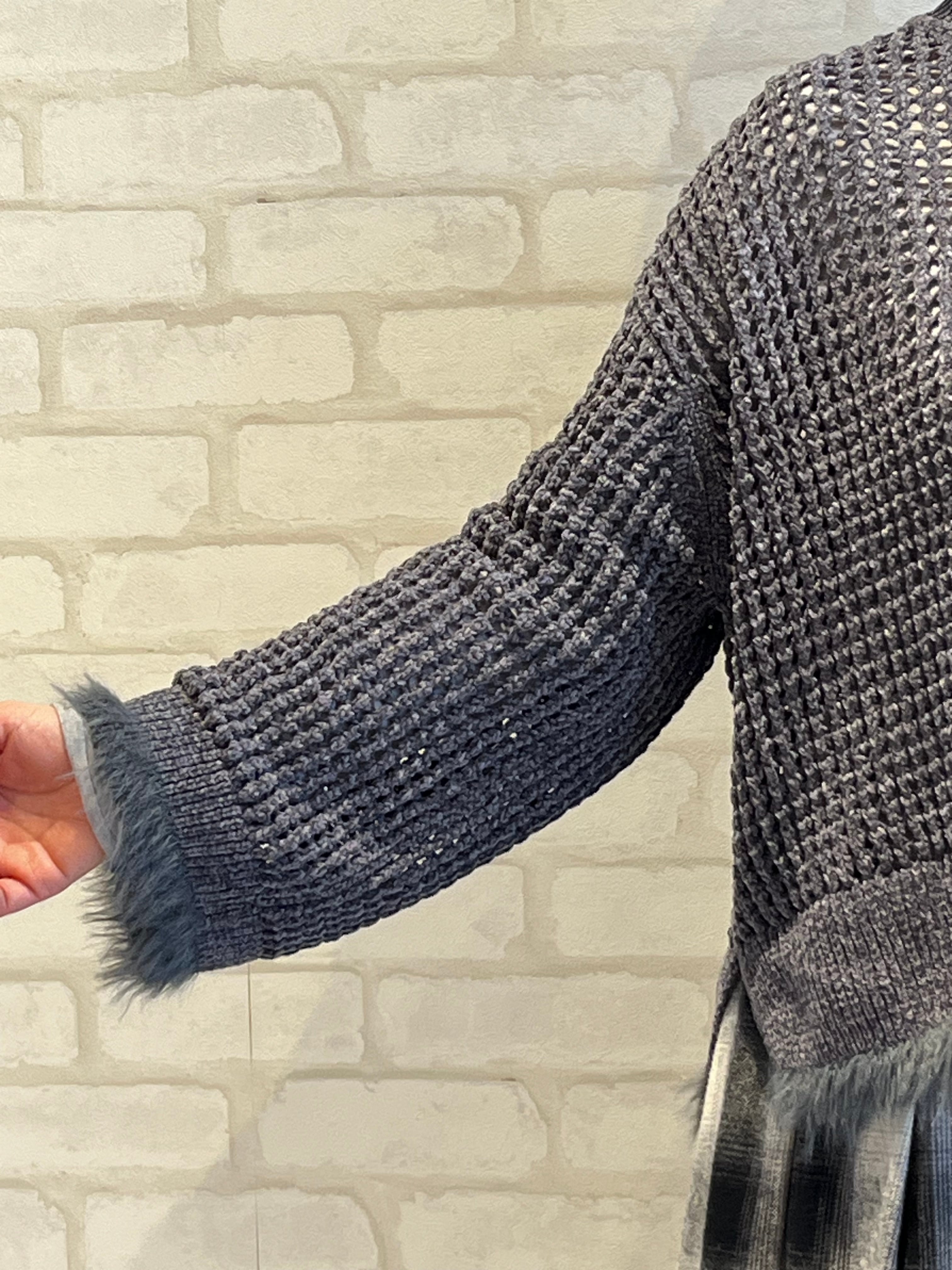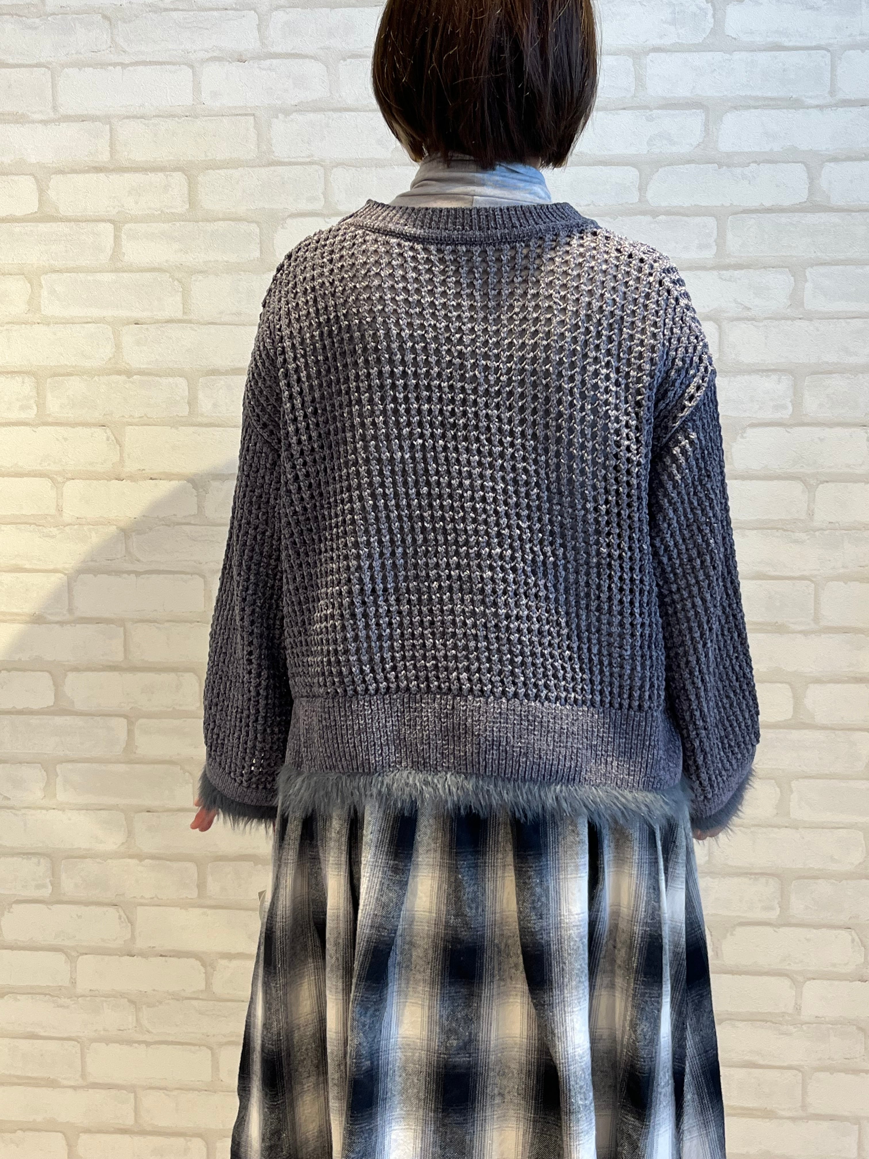 ベロア素材の大き目メッシュのニット。