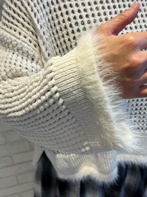 ベロア素材の大き目メッシュのニット。