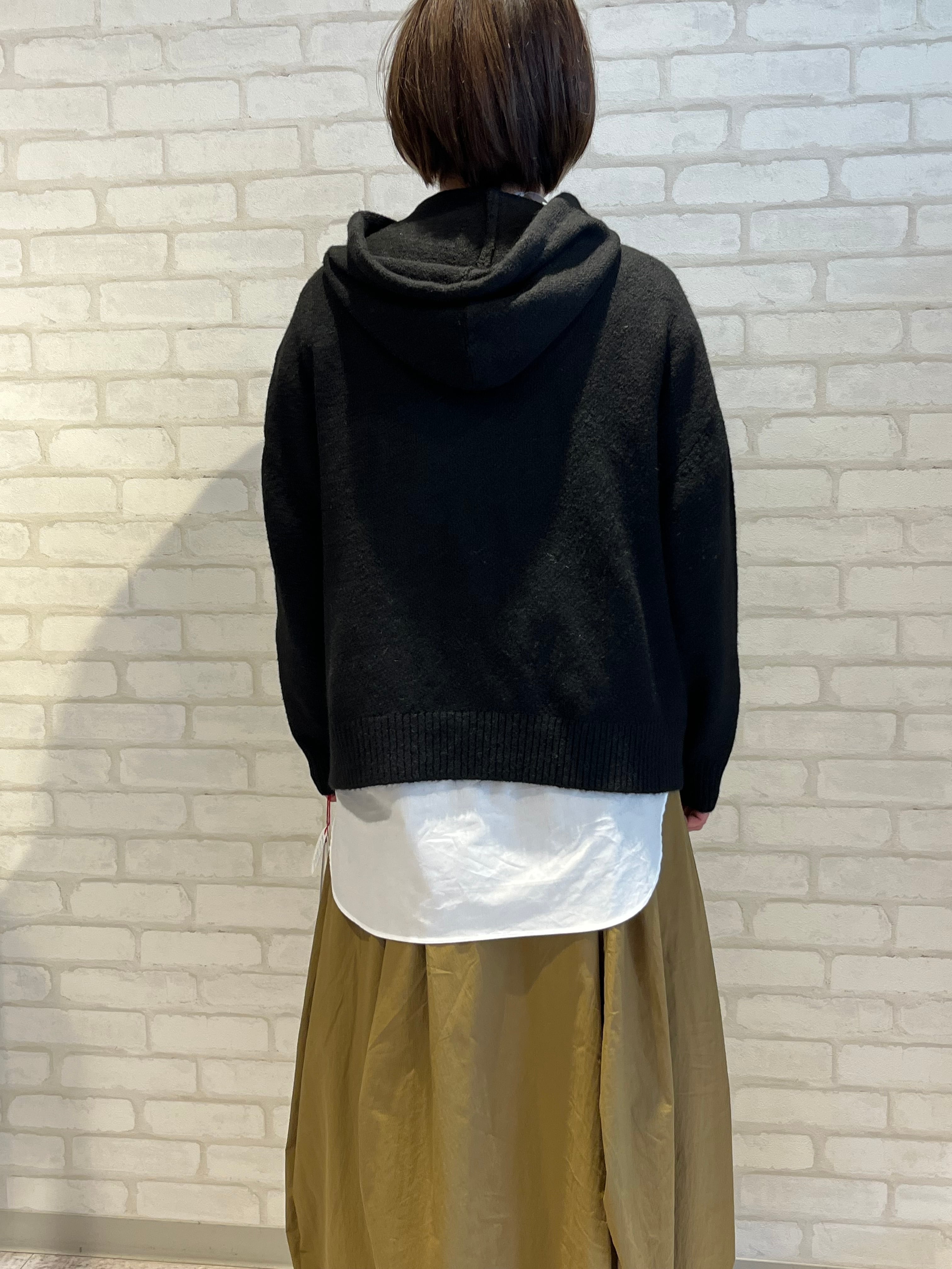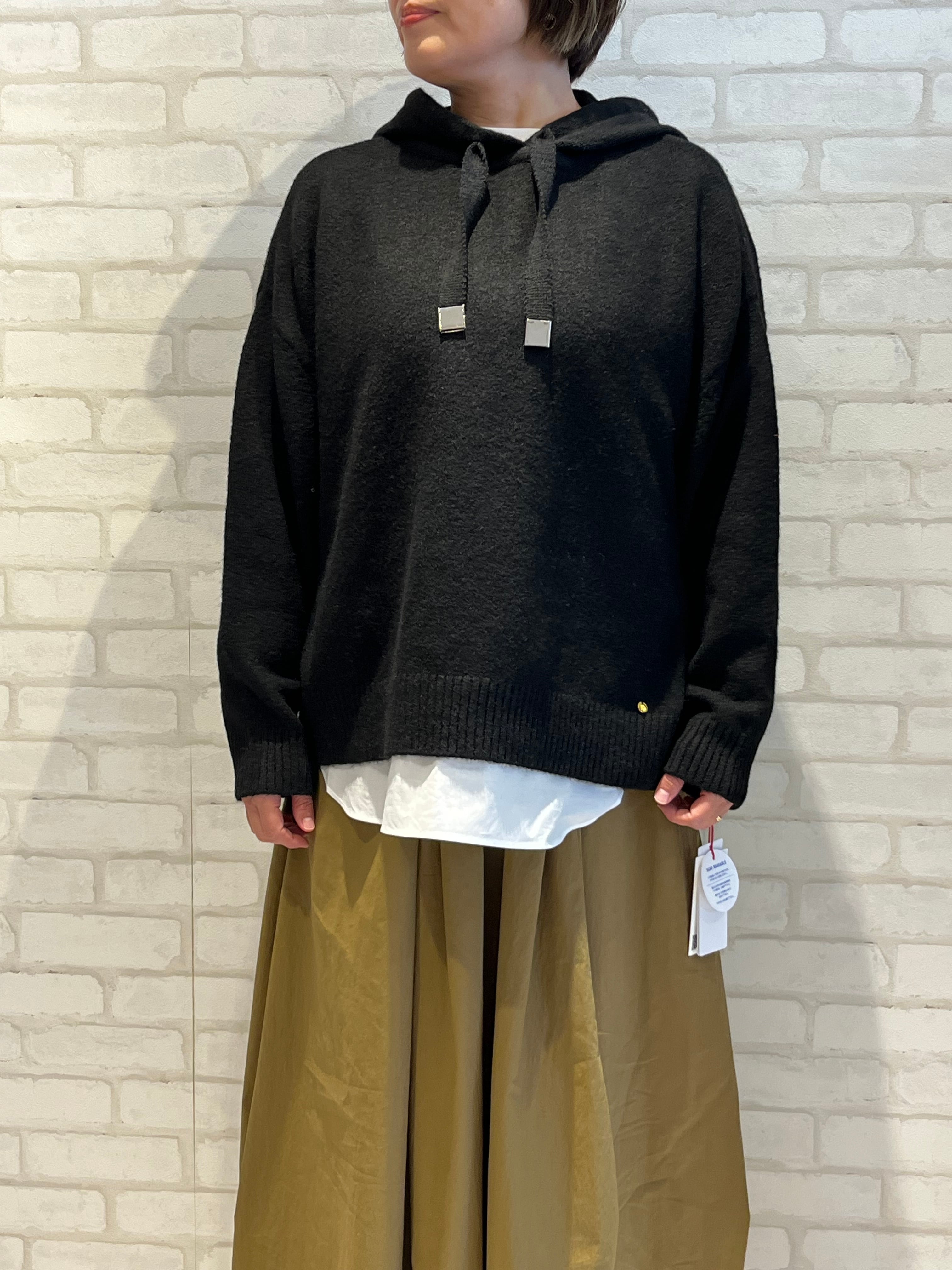 ニットはもちっとした質感が気持ちよく、長すぎない着丈で様々なボトムとも相性抜群。