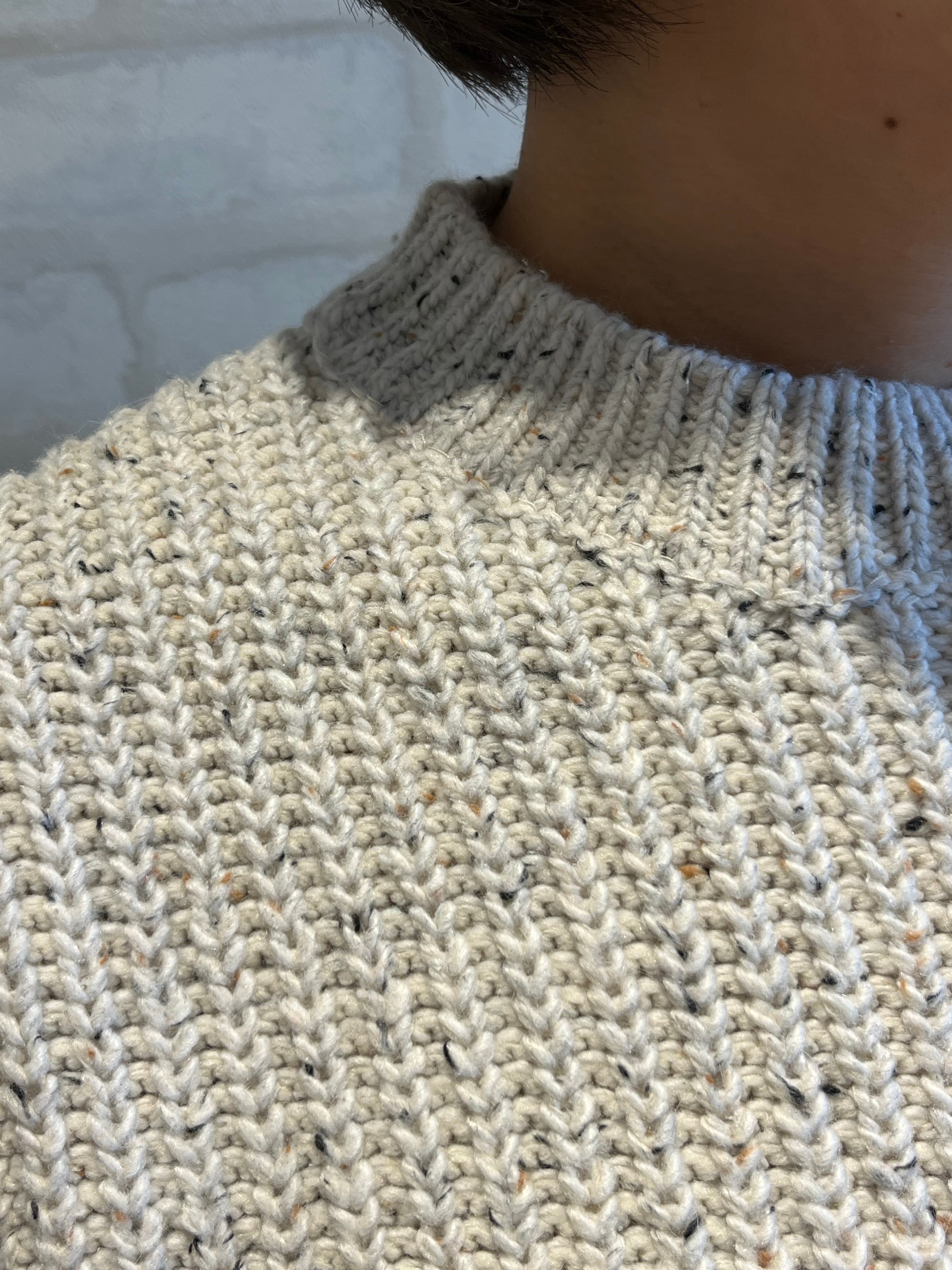 ザックリと編まれたネップ入りの表情豊かな素材と、ふんわりフォルムのスリーブがアクセントになっております。