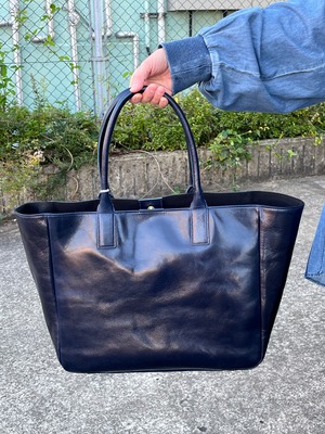 ブランドの特徴である上質なレザーで仕立てたトートバッグ。