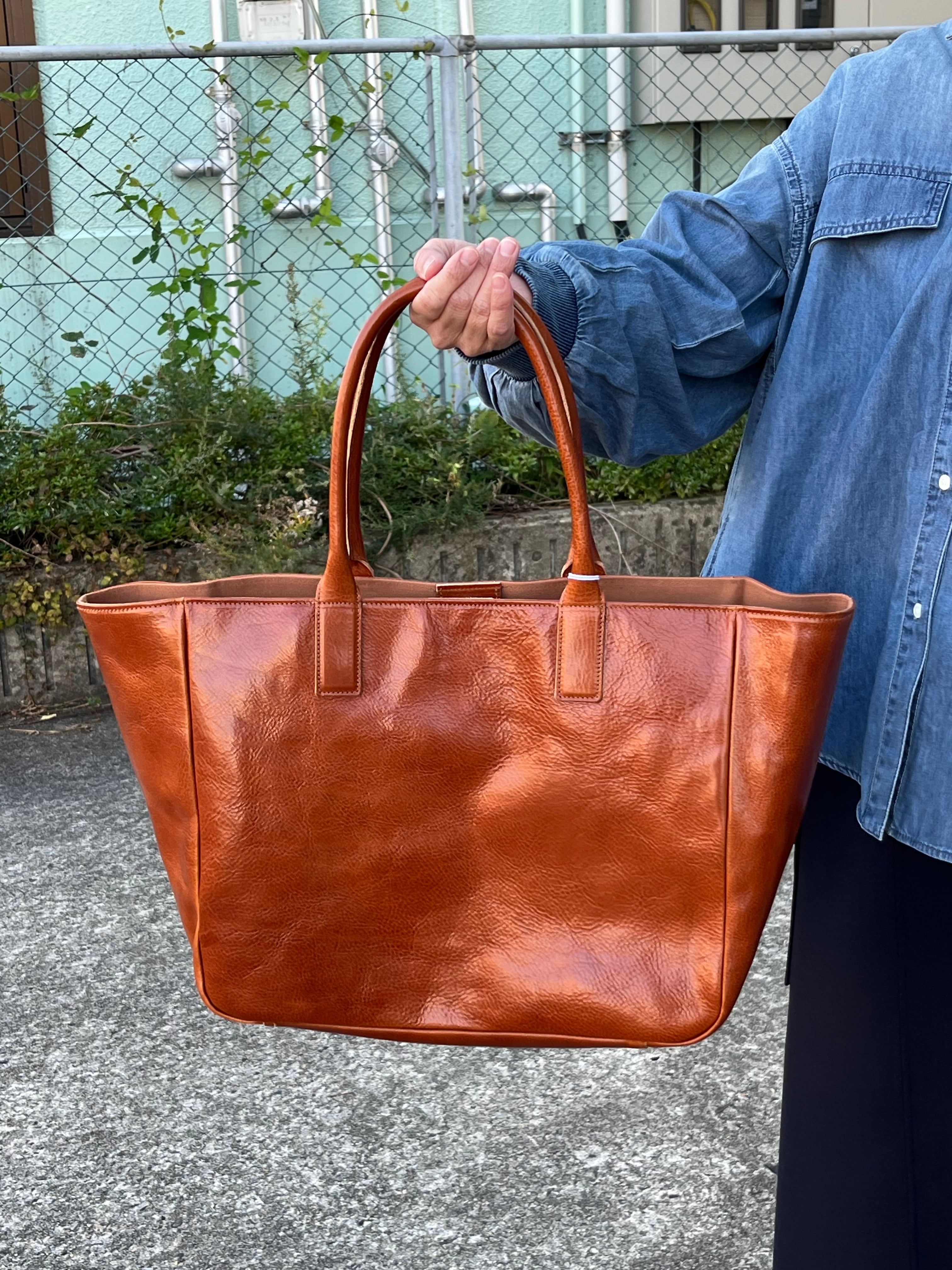 ブランドの特徴である上質なレザーで仕立てたトートバッグ。