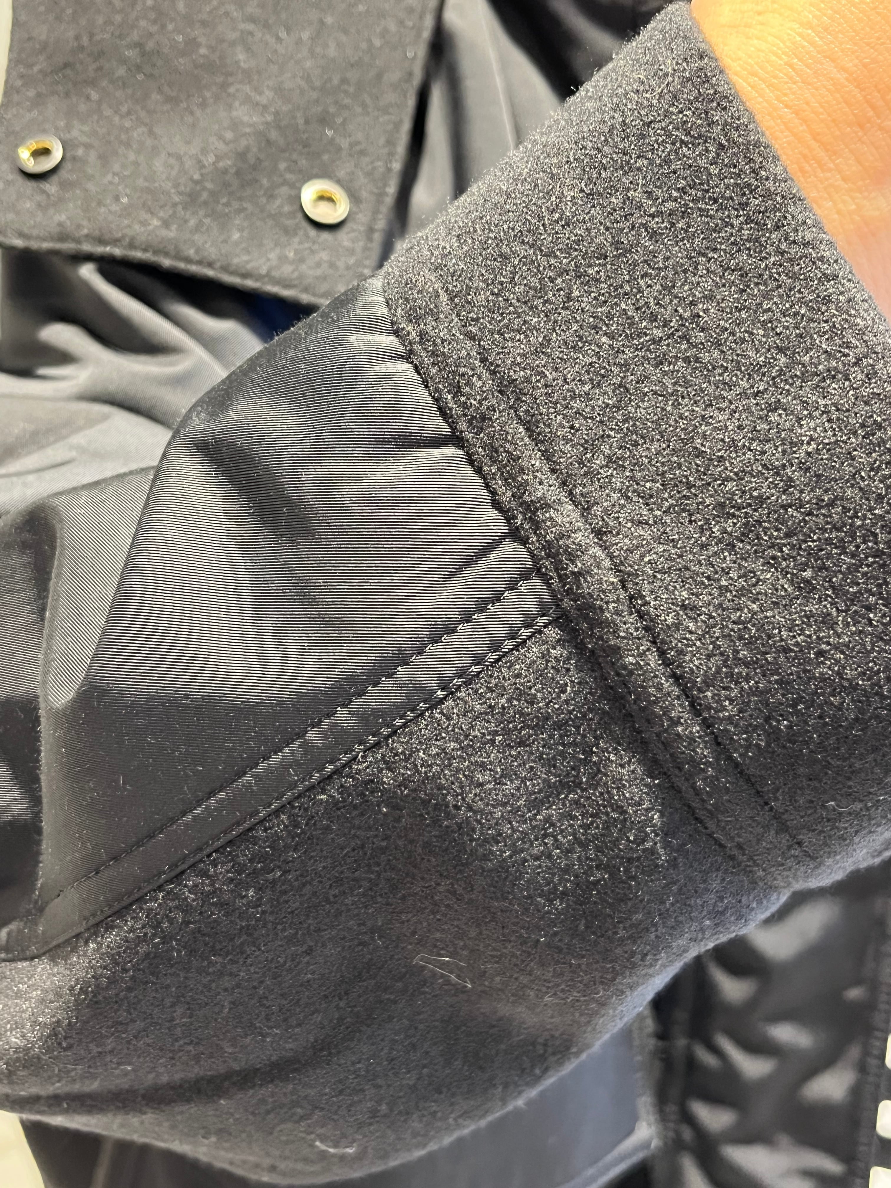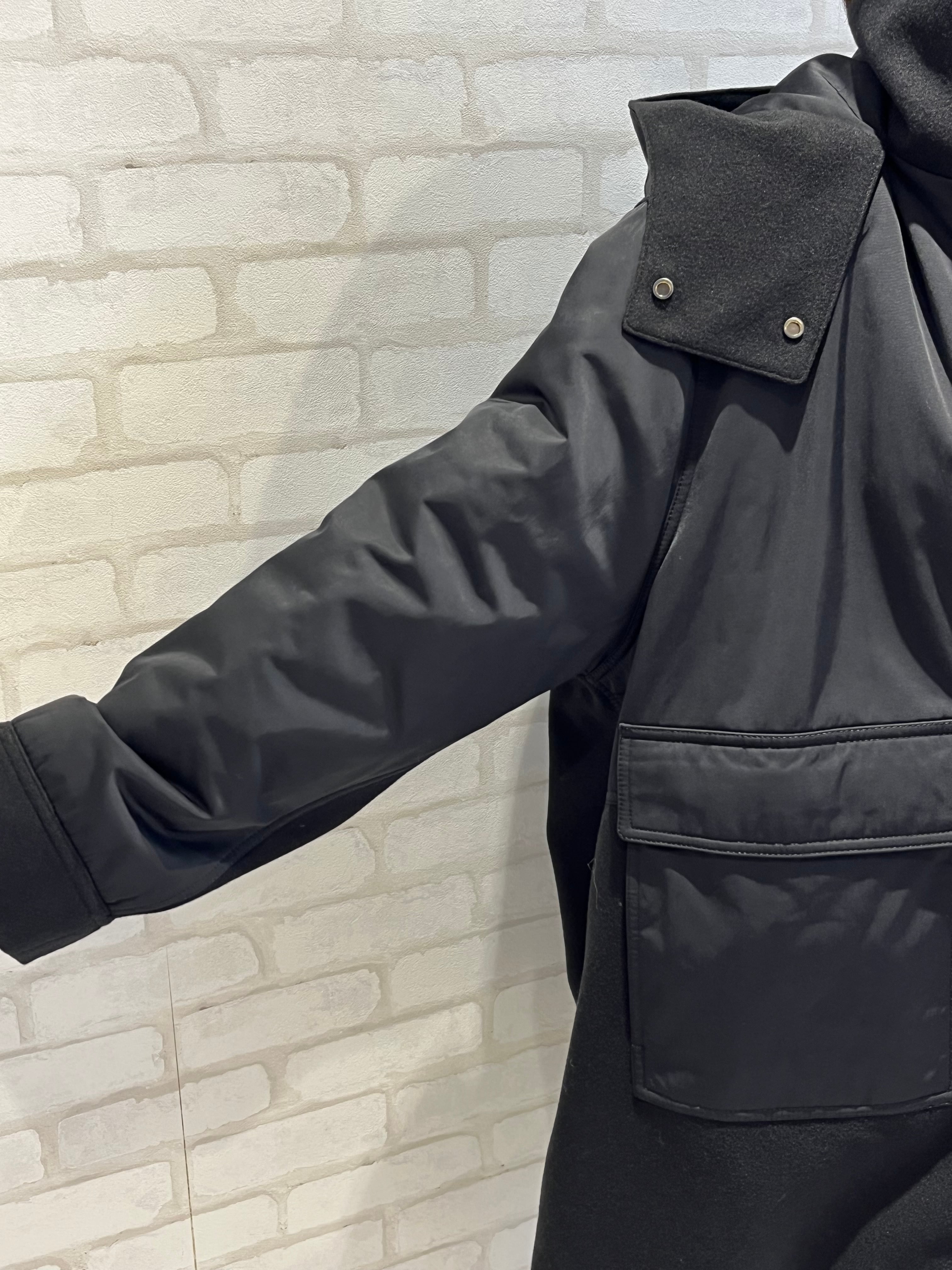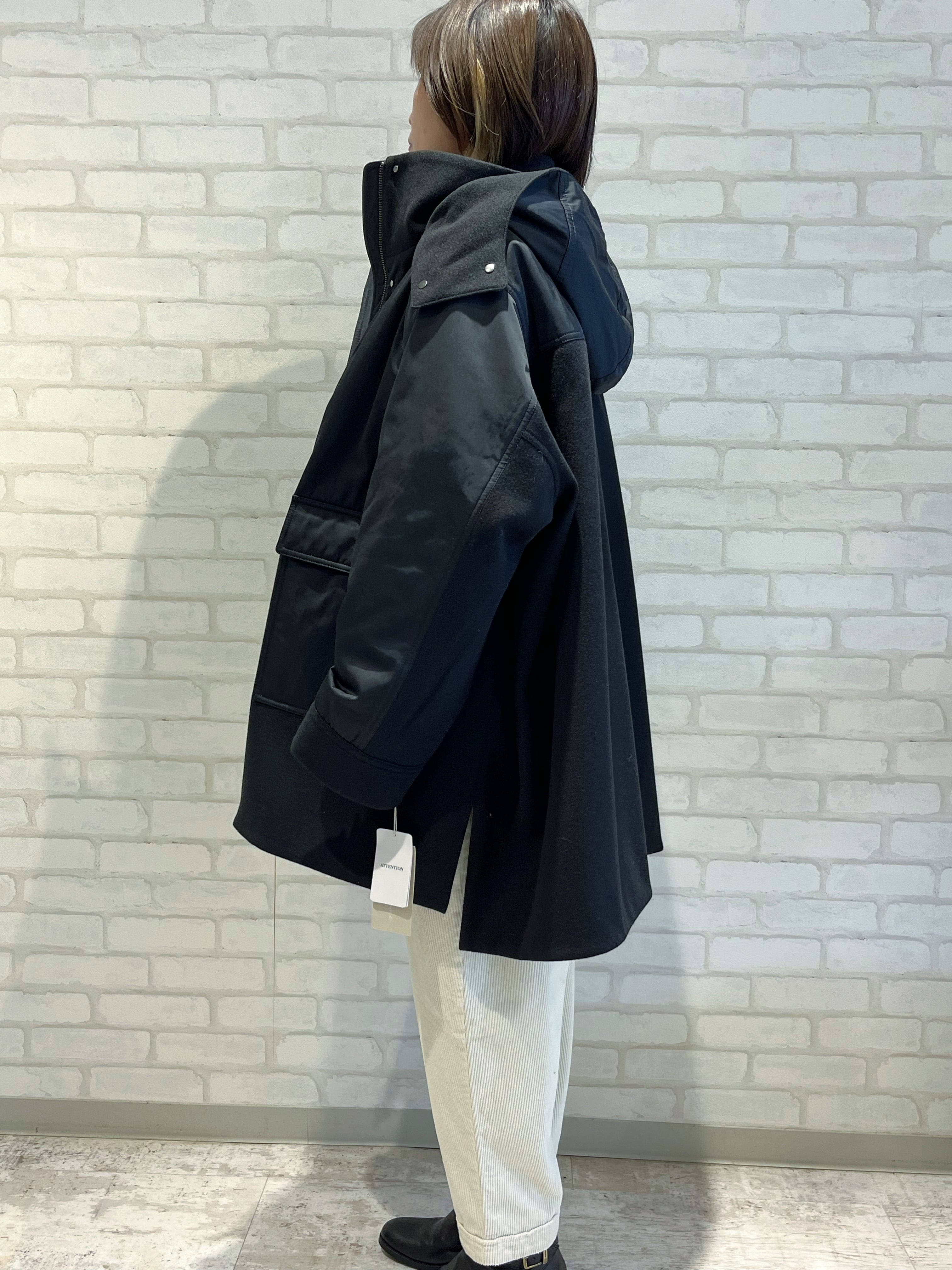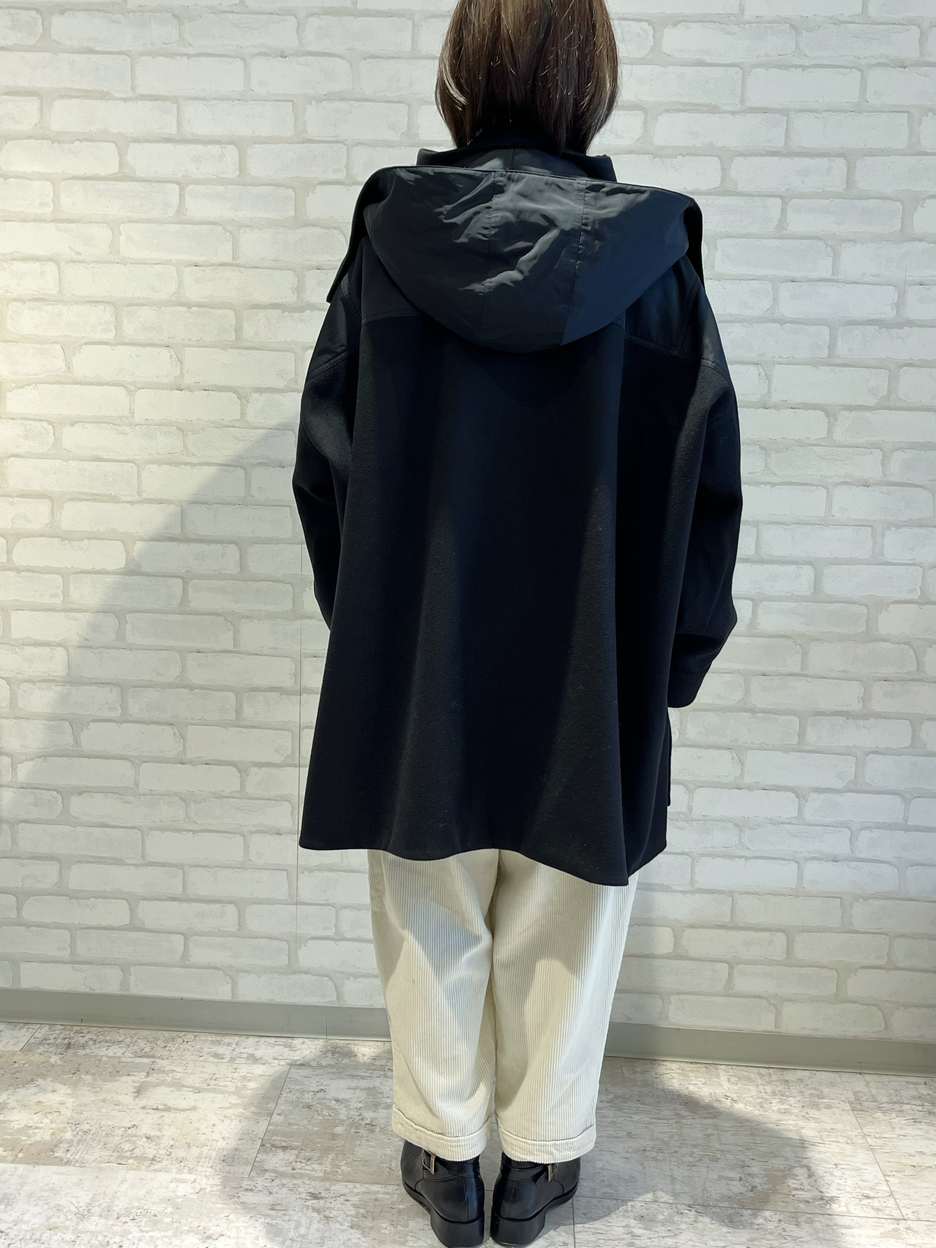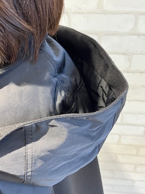タフタと起毛素材の切り替えデザインがアクセントになったアウター。