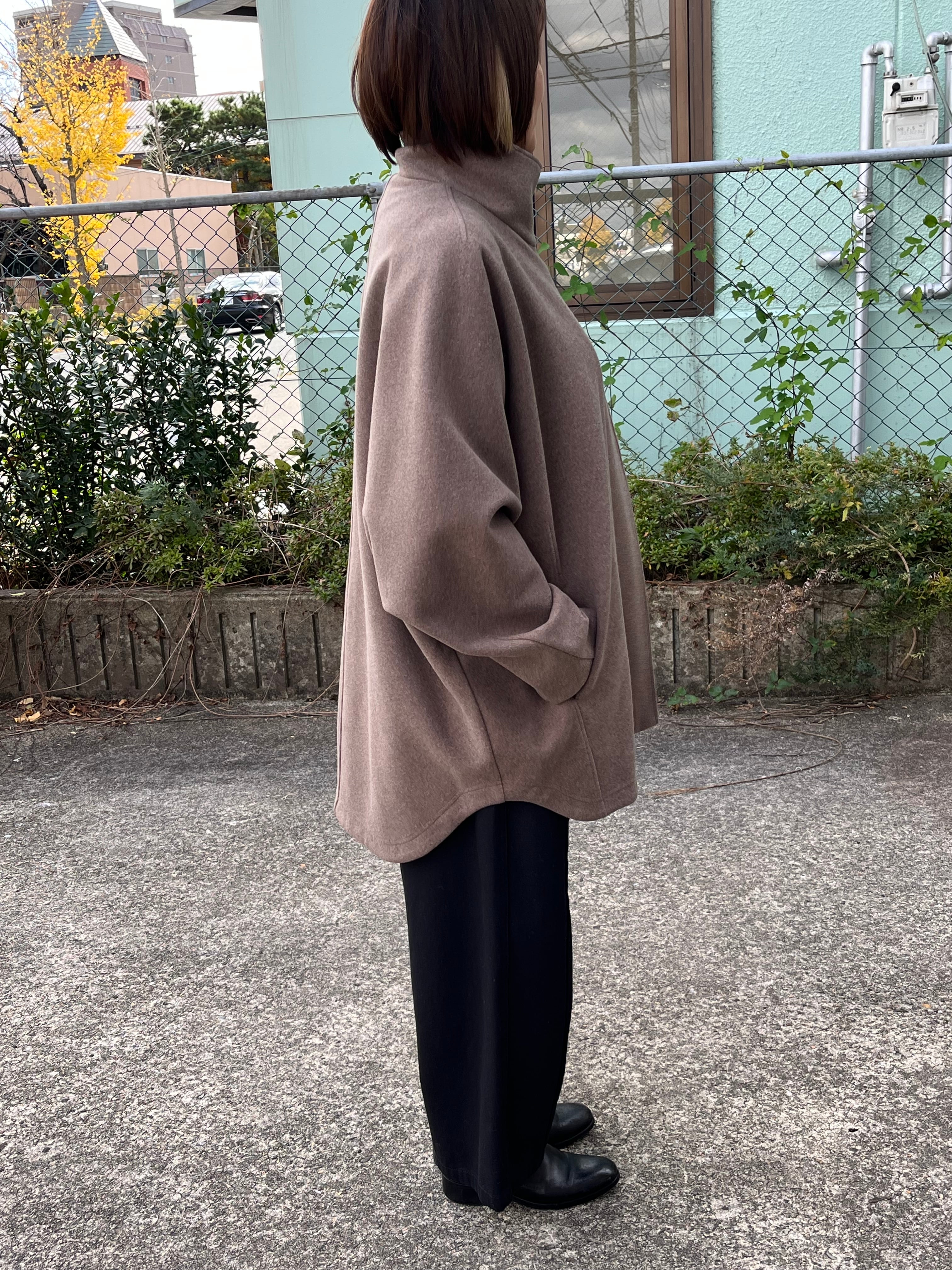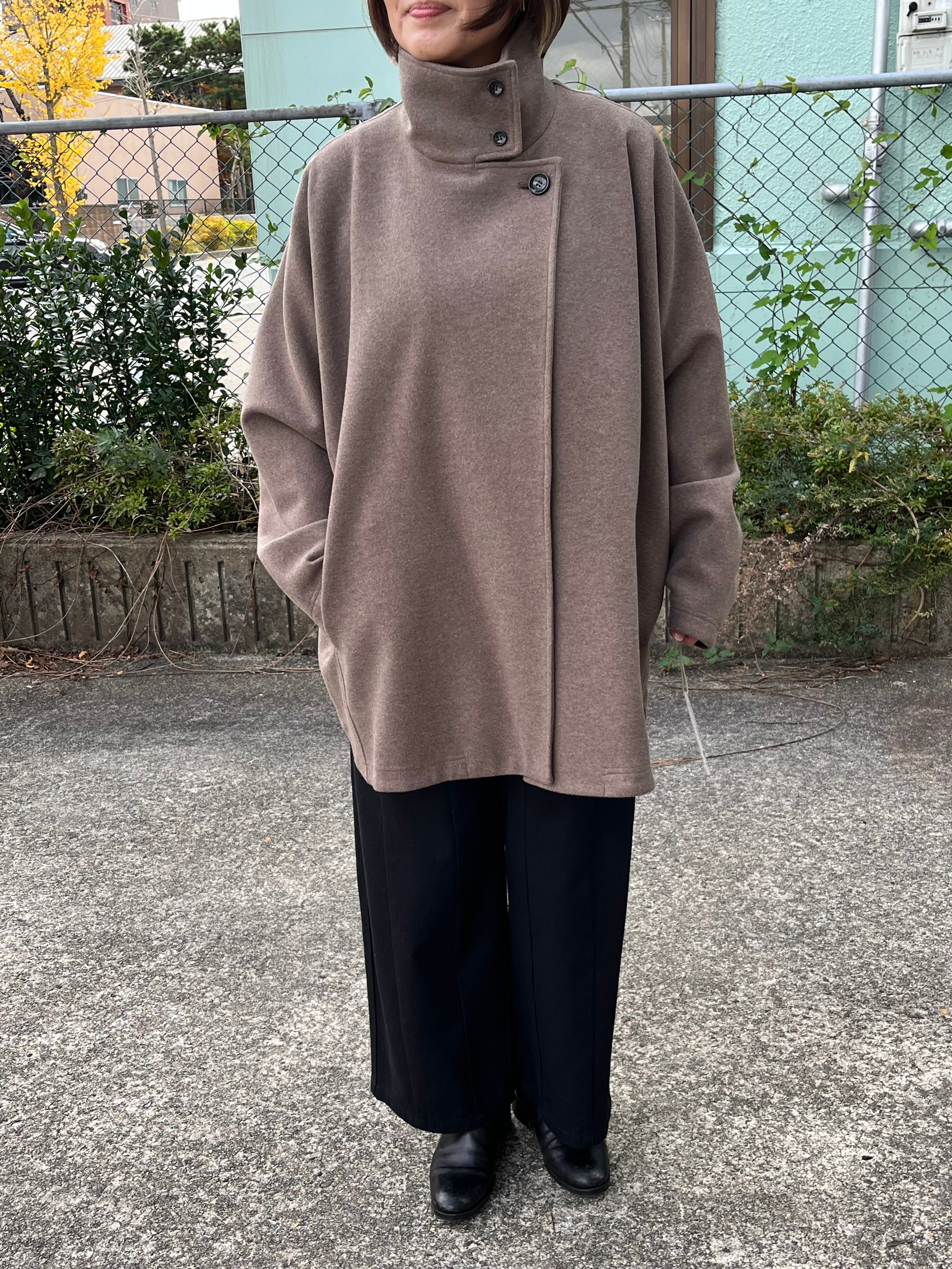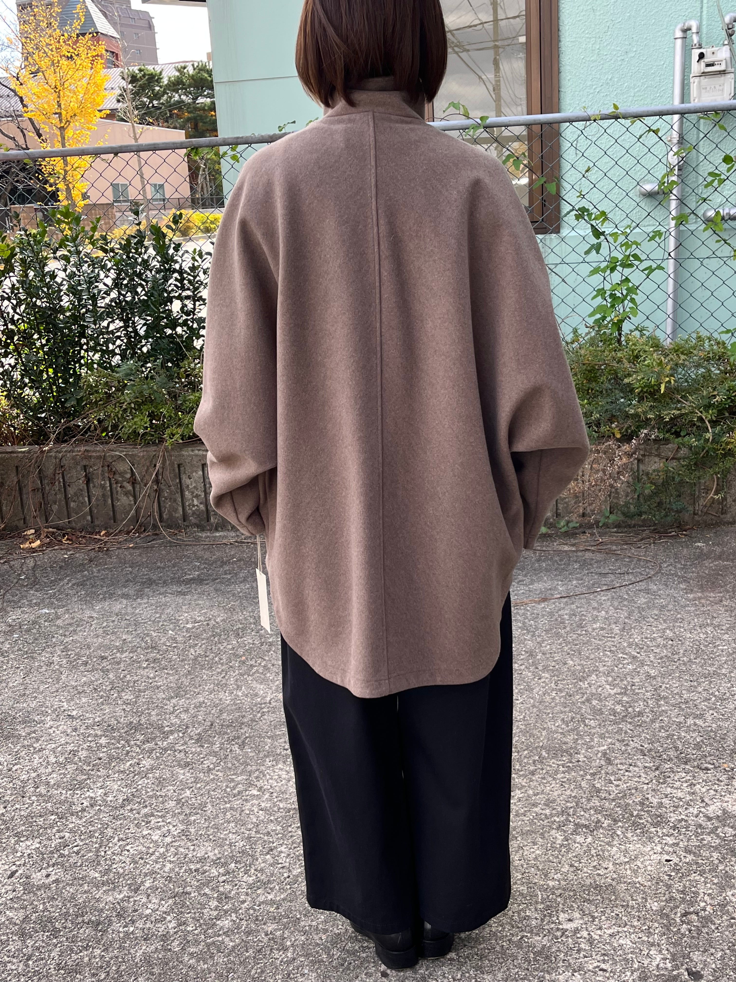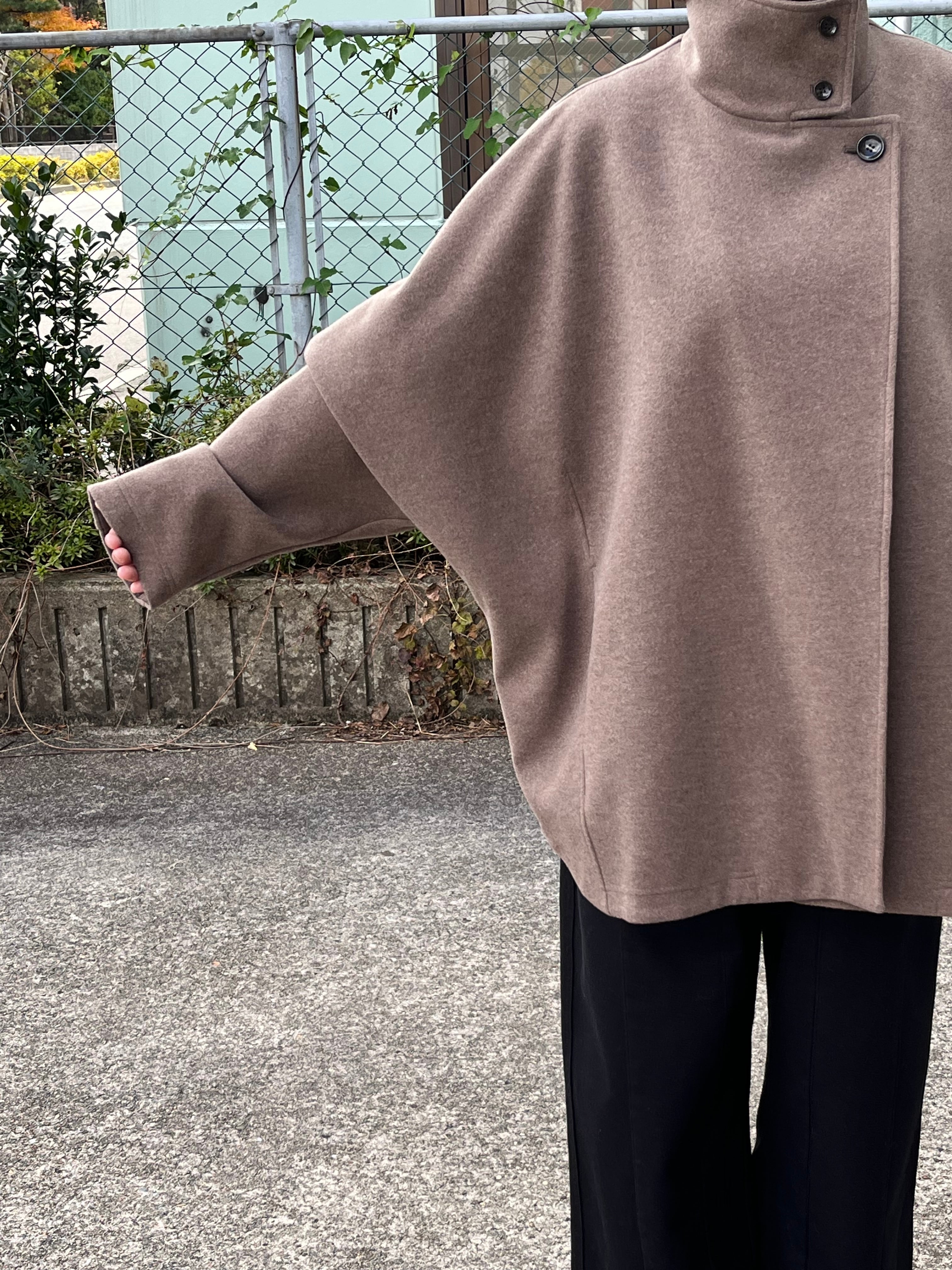ケープ見えするドルマンスリーブデザインで、ゆとりもあり、中に厚手のニットやボリューミーな袖のトップスを着ていても楽に羽織れます。
