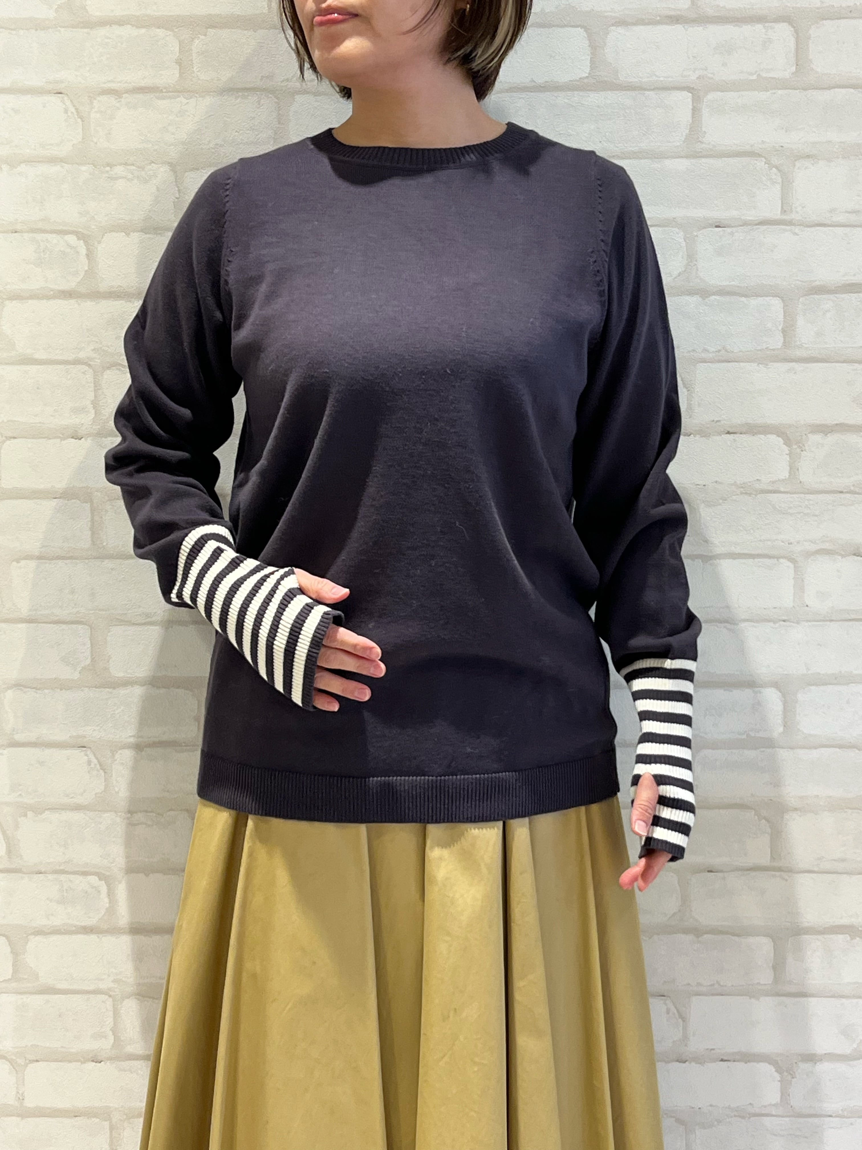 一枚でもインナーとしても着れる袖口部分がボーダー切り替えになった