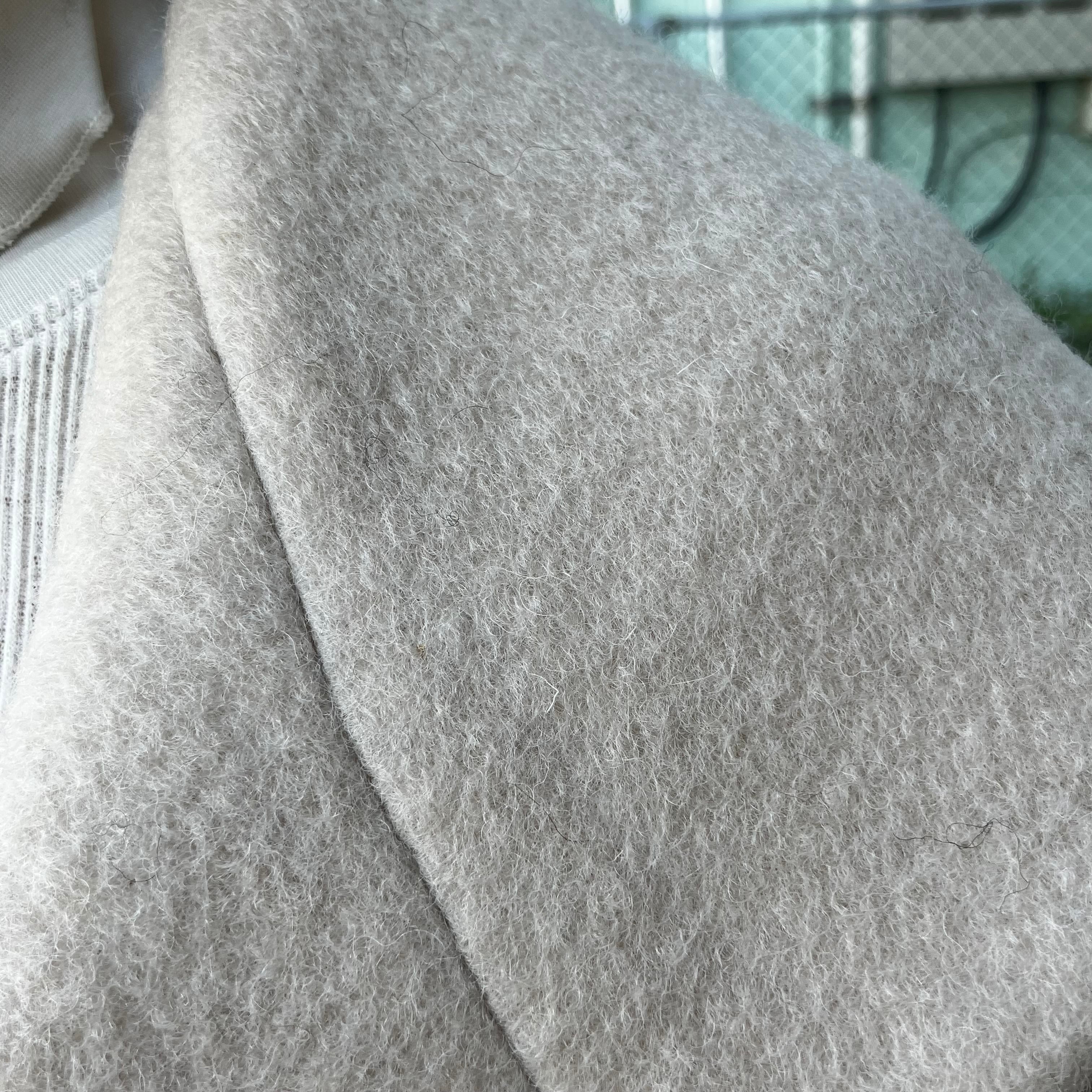 スライバーニットのようなふんわりとした表情のウール生地を使用し、驚くほど軽いのが特徴です。