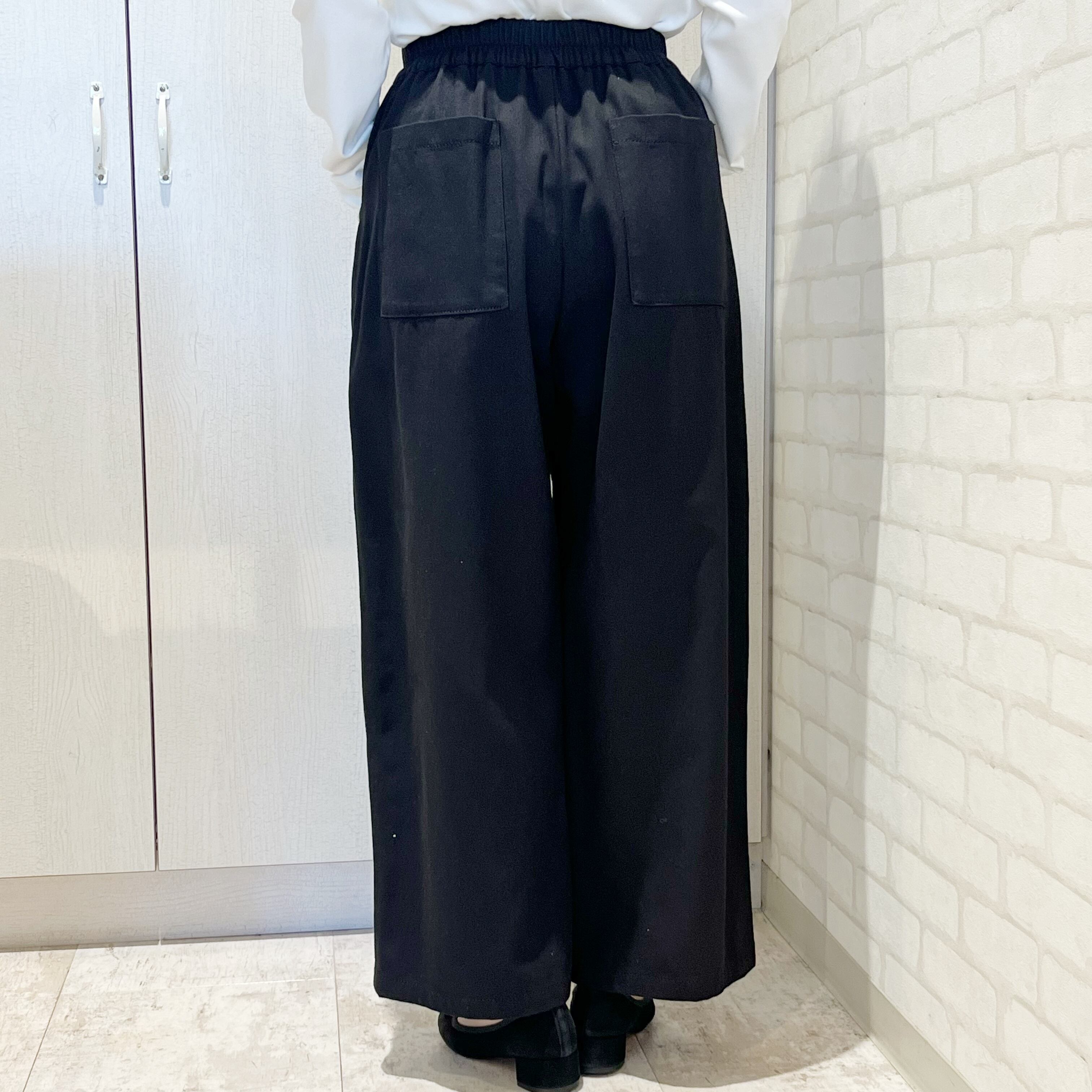 フロント部分に切り替えデザインが入ったコクーンパンツ。